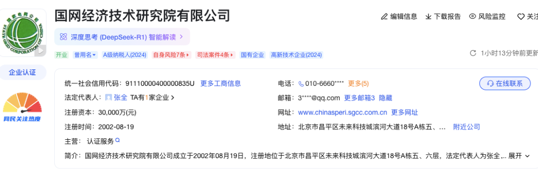 从企查查了解,2025年10月15日国网经济技术研究院有限公司法人代表更新为张全。