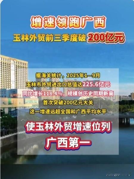 玉林果然没有让人失望! 这两年的外贸像是打通了任督二脉一样,呈现爆发式增长,今年前三季度玉林外贸增速位列广西第一,首次突破200亿大关,规模排在了广西第八位!得益于交通的完善,加工贸易投资升级,使得玉林交出了一份靓丽的答卷,但前路漫漫,还需更多的努力去巩固基础盘!广西玉林是一个什么样的城市 玉林发展 玉林经济 三季度外贸 玉林招商引资