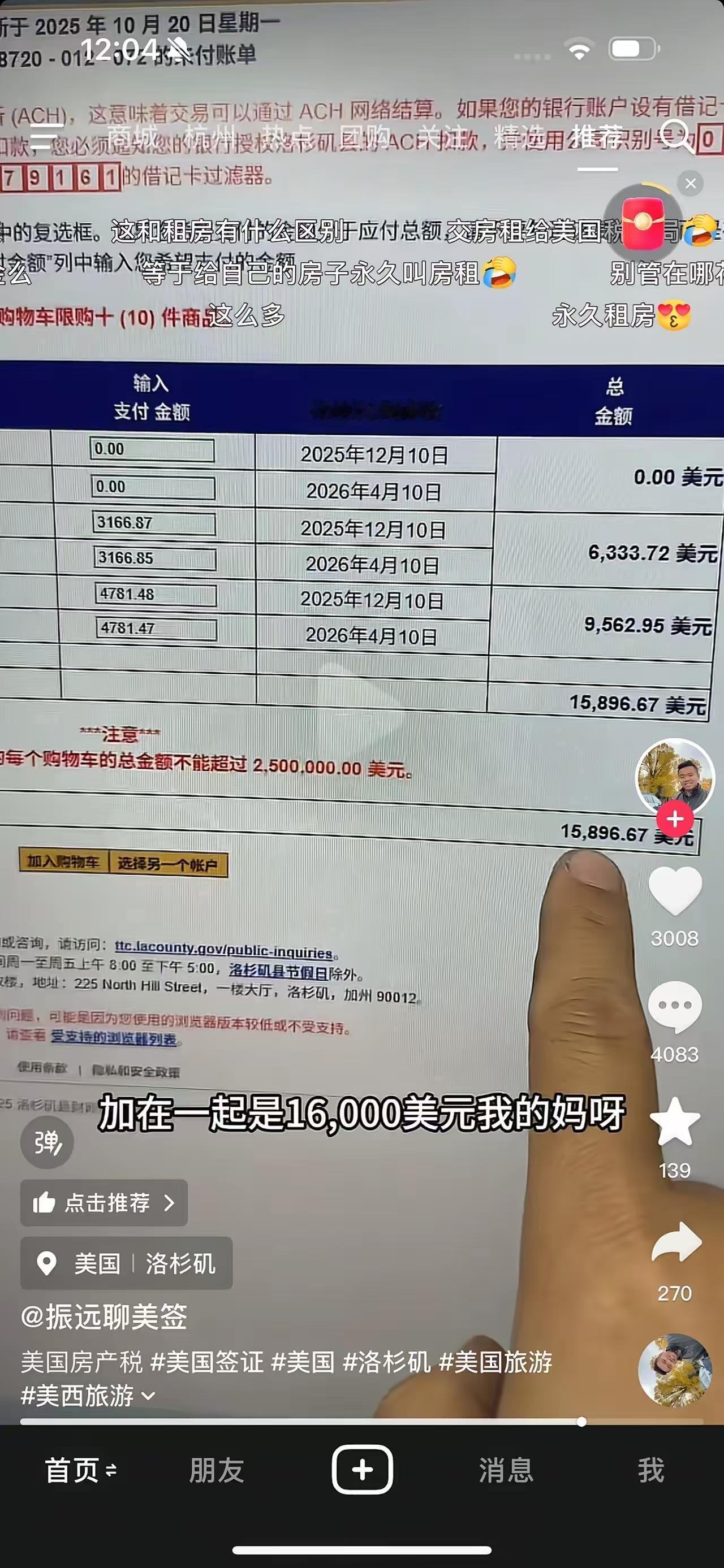 这就是所谓永久产权,房产税每年16000美金约等于11.5万人民币 美国普通打工