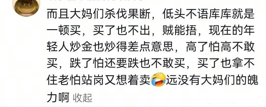 “一觉醒来,金价跳水!”前一秒还在朋友圈晒700块高位止盈的大哥,后一秒就抱着手机拍大腿:国际盘半夜闪崩,国内现货早上直接杀到933一克,比巅峰便宜了近40块。消息像鞭炮扔进广场舞群,“囤金大爷大妈”出动了。十点不到,菜百门口弯了三道弯,口罩都遮不住兴奋:“闺女快排队,今天拿条100克,省下的钱够给孙子交半年托费!”柜台小姐姐嗓子喊冒烟,金条刚补货就被“秒空”,刷卡声噼里啪啦像过年。 有人买,就有人卖。回购窗口那边,西装哥拎着300克旧金条,笑得见牙不见眼:440进的,940出,一克净赚500,十分钟账面浮盈15万,直接给老婆换辆代步车。旁边大姐更狠,700多扫的货,980没舍得走,结果睡个午觉跌回950,赶紧“割肉”:“赚1万也跑,心脏受不了!” 热闹是投资金的,金饰品却冷清。60克手镯还得7万多,准新娘试了下又放回去:“再等等,万一还跌呢?”店员苦笑:婚庆刚需才出手,散客全在观望。 一句话,金价这过山车,胆大的把回调当红包,胆小的把震荡当警钟。上车还是下车?您自个儿掂量心脏功率,反正市场永远不缺下一波“抄底大军”。 (来源:贝壳财经)