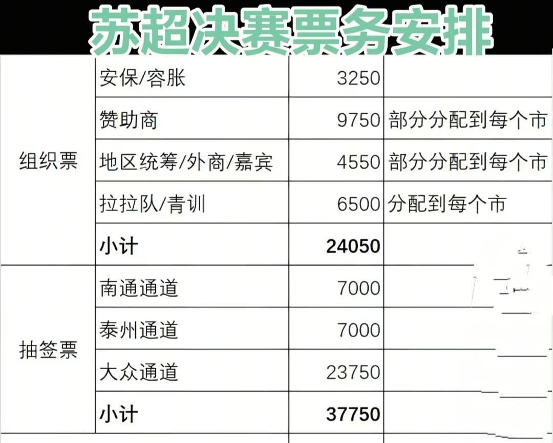 刚曝光的苏超决赛门票分配方案,直接让球迷圈炸锅了。这事说起来有点离谱,南通和泰州两边的球迷团体,各拿到7000张票,而剩下的2.3万张票,留给了江苏其他地区和全国球迷。 我本来寻思,这焦点战怎么也得是南通三万球迷对垒泰州三万人的大阵仗吧?结果整场下来,两队核心支持人群加起来才1.4万,撑不起整个球场的热度。按这分法,现场气氛估计还不如平时联赛,自家阵营被稀释得七零八落,助威声势肯定大打折扣。 票务分配直接左右赛场氛围。球迷文化靠的是凝聚力和对抗性,这么一分,主队声势弱了,观赛体验也跟着打折扣。希望后续赛事能更科学统筹,让真正想呐喊的人坐到一块儿。 素材来自网络,侵权联系删除