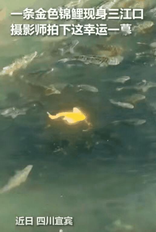 这条锦鲤太漂亮了,在河流中能够出现这样的鱼,大概率是放生放出来的,自然野生的不可能有这么漂亮的鱼。这条金色的锦鲤在水中游的时候,水中的其他鱼也都追随它的后面,好像以它马首为瞻似的,看起来特别的壮观,特别的好看,在水面中形成了一道靓丽的风景。
