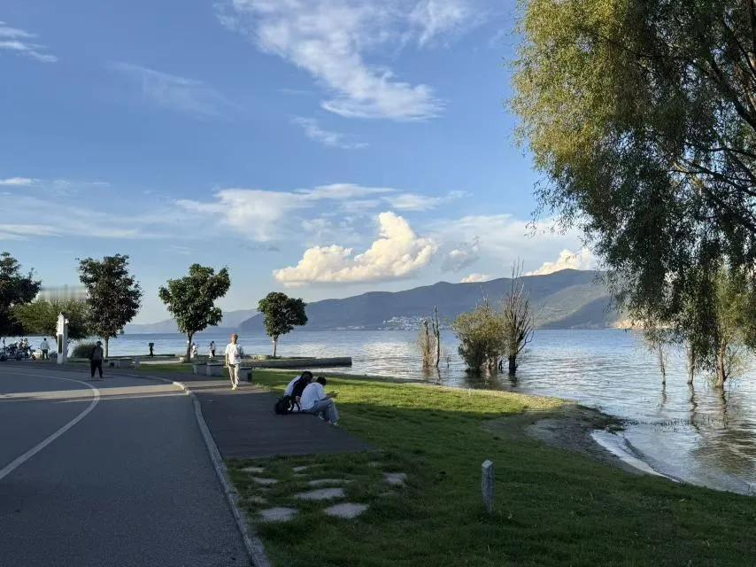 沿着洱海生态廊道骑着小电驴,吹着洱海的风,被洱海的边美景美到了!累了停下来喝杯咖啡☕,欣赏着美景……
