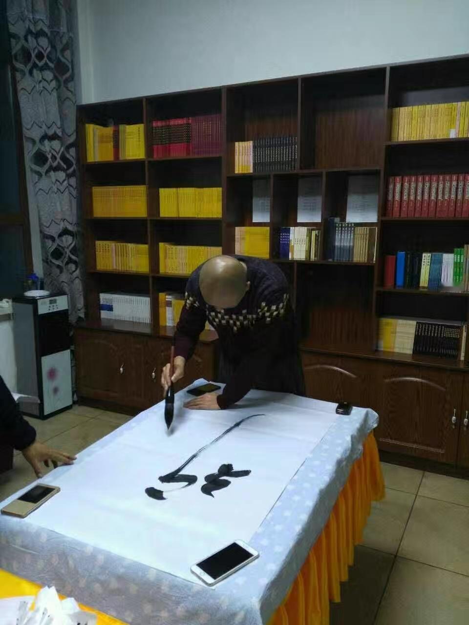 2017前2月24清晨法成法師揮毫潑墨,為家鄉人留下珍貴的墨寶。