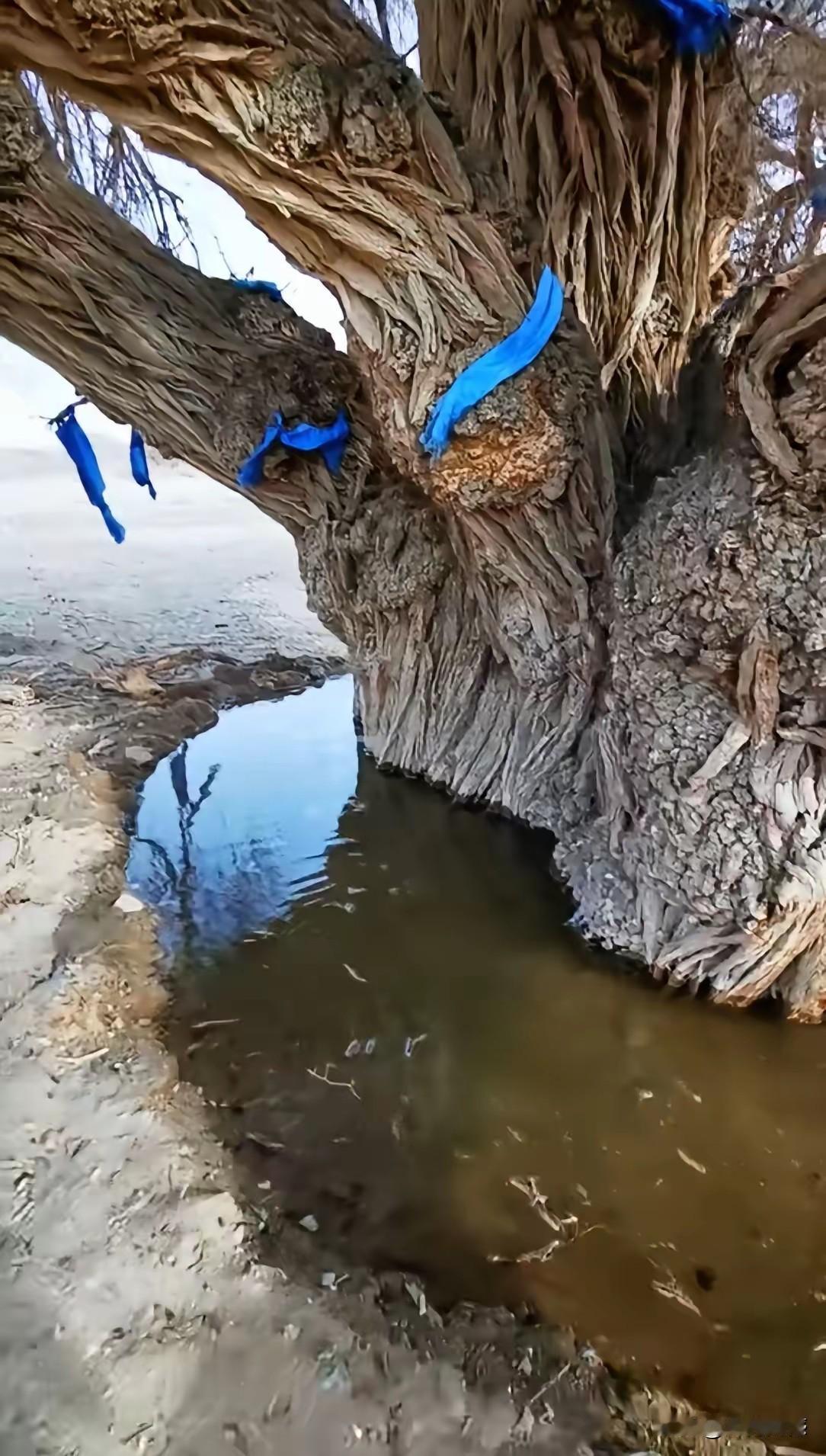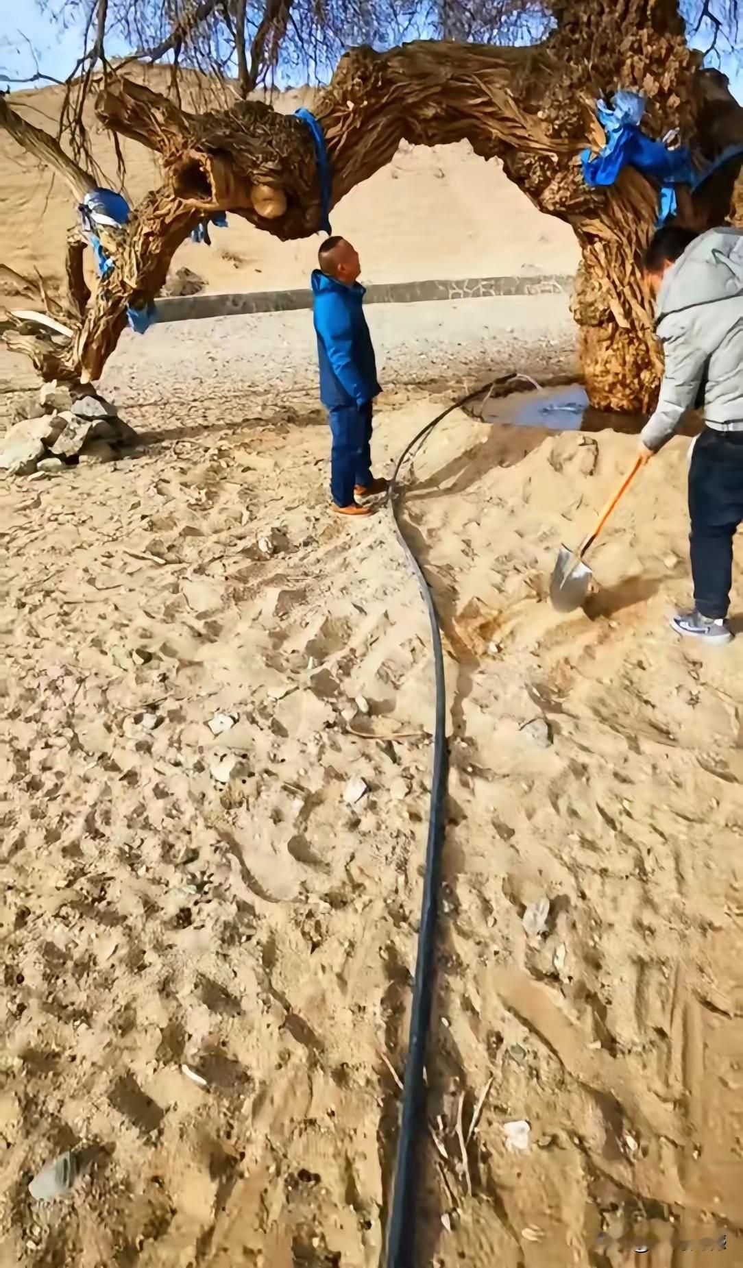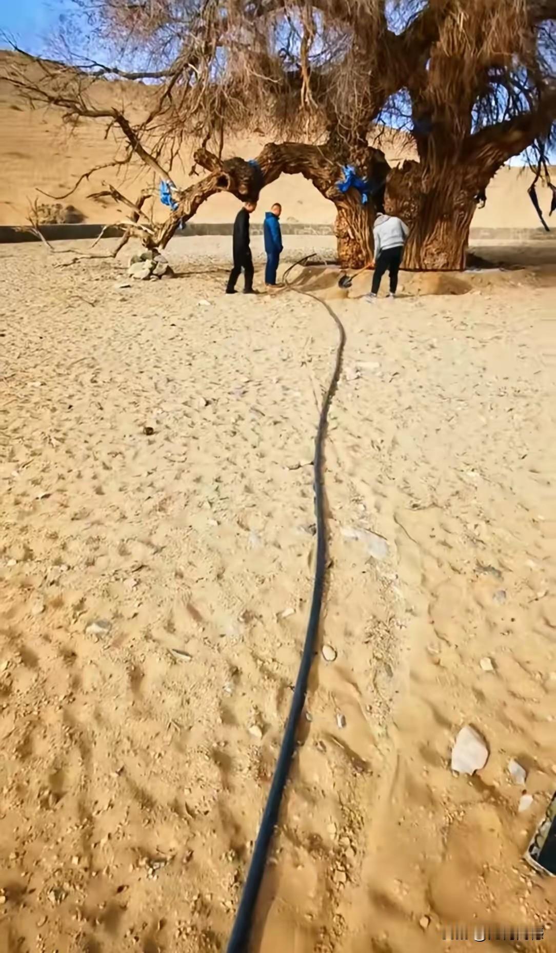 生长在沙漠中的这棵树,看起来应该有一定的年头了,树干非常的粗,但是枝叶肯定也不是很茂盛了,因为大树到了一定年纪的时候,和人老的时候也差不多,也是枝叶飘零,风烛残年,正如枯树赋所说的那样,昔年种柳,依依汉南,今看摇落,凄怆江潭,树犹如此,人何以堪!