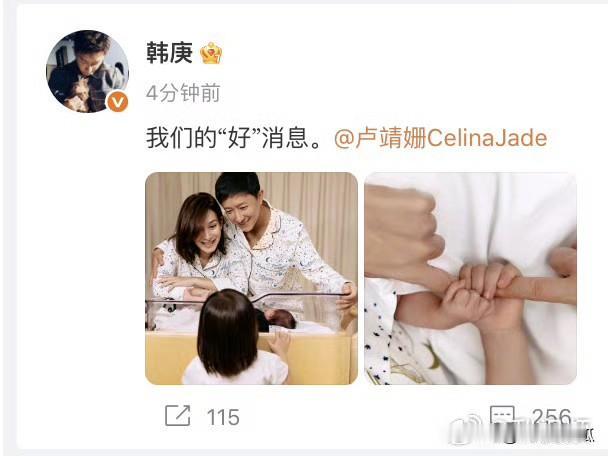 韩庚二胎官宣文只用了6个字 方媛三胎官宣文案却用了几行字 对比一下真的很明显 那就是真实越在意什么就越强调什么,方媛强调了郭富城的态度,强调了爱不论性别,其实这两样东西她都很在乎。 而韩庚这边只用了短短6个字,人生得意须尽欢,他儿女双全那个“好”字就是最好的说明。