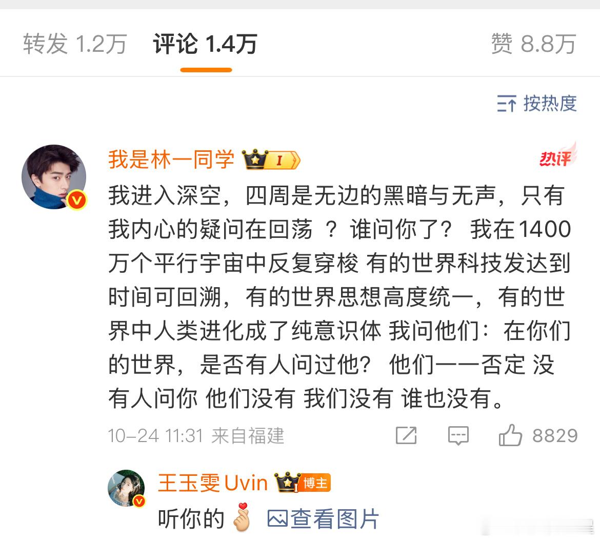 刘亦菲的迷弟和迷妹哈哈哈哈林一王玉雯好像在为刘亦菲争风吃醋林一评论了王玉雯