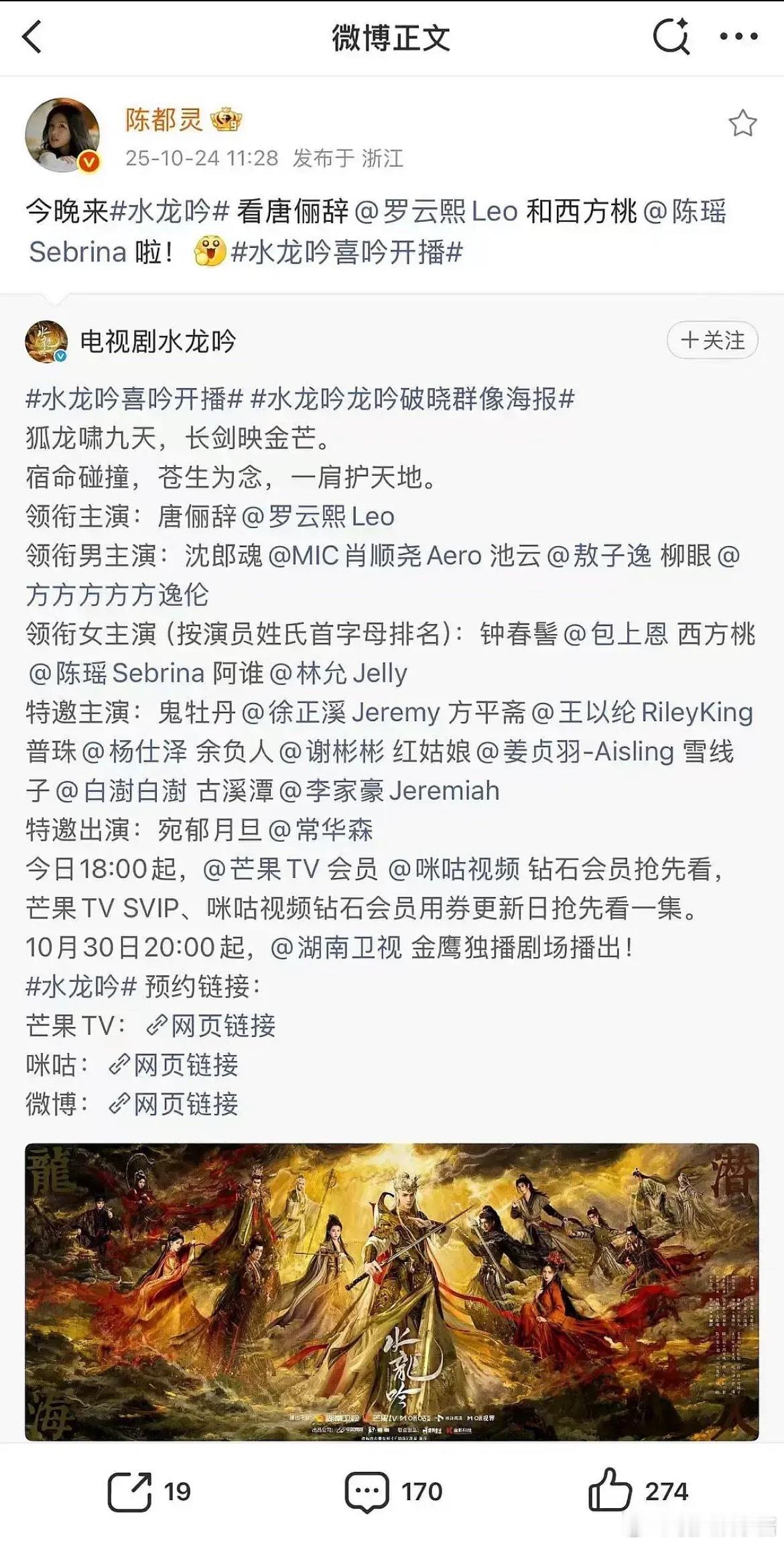 天啊,陈都灵帮罗云熙宣传水龙吟了😨