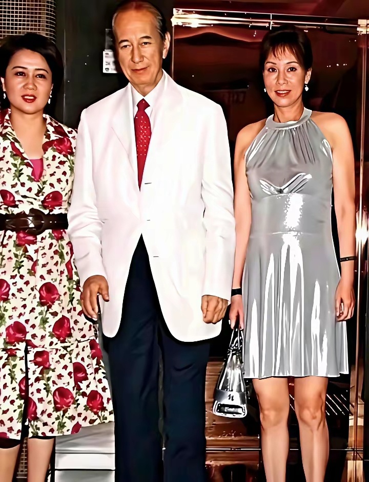 镜头里,何鸿燊左手牵着三太陈婉珍,右手挽着四太梁安琪,三人笑得像一张全家福。
