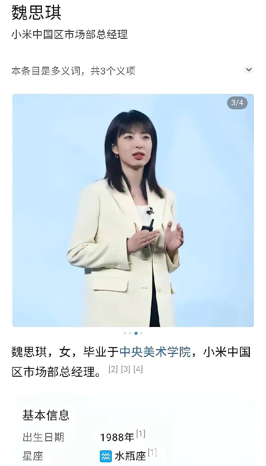 谁能想到啊!小米突然开除王腾,接位的竟是37岁的美女魏思琪,这波人事变动直接让网友炸了锅。 魏思琪可不是空降的“关系户”,25岁就进了小米,最早干的是写发布会PPT的活儿,没想到一干就是12年,硬生生从幕后走到台前挑大梁。这哪是运气好,分明是把每件小事做到极致的结果——能把PPT写出彩,说明她懂产品、懂用户,现在担重任完全是水到渠成。 至于王腾离职的原因,到现在还是谜,但小米选择公开这件事,肯定不是随便拍板的,要么是想给团队释放“能者上”的信号,要么是为后续战略调整铺路。 你们觉得,魏思琪这位从基层拼上来的高管,能给小米带来新变化吗?