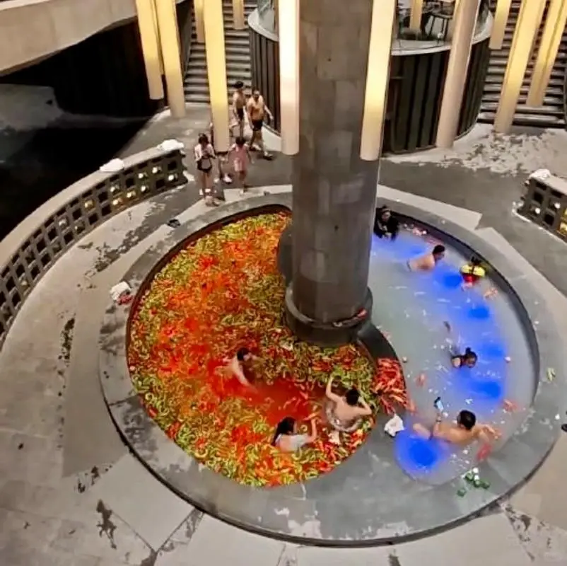 但这波操作直接炸出两派网友!支持者狂夸 “东北人太会玩”:“把澡堂文化和火锅魂结合,这创意能吹一年!” 确实,东北澡堂早不是单纯搓澡的地儿了 —— 汗蒸房分七八种温度,休息区能躺平看电影,连粘豆包都能随时点,这次的鸳鸯锅不过是 “仪式感升级”。可反对者骂声也不少:“用食材搞噱头太浪费”“敏感肌泡着能舒服?” 商家赶紧回应,菜椒会回收利用,还加了皮肤敏感测试,才算稳住阵脚。