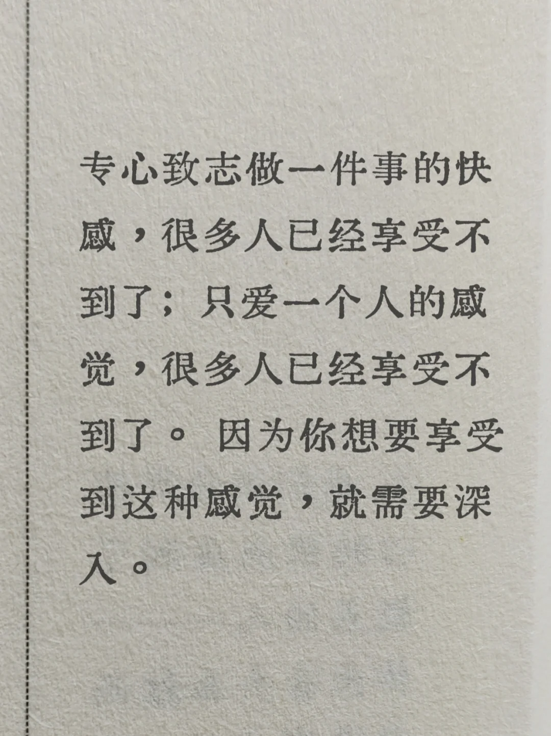 ✔️我们越来越难享受专心做一件事的快感,或深度爱一个人的感觉,因为缺乏“深入”。
