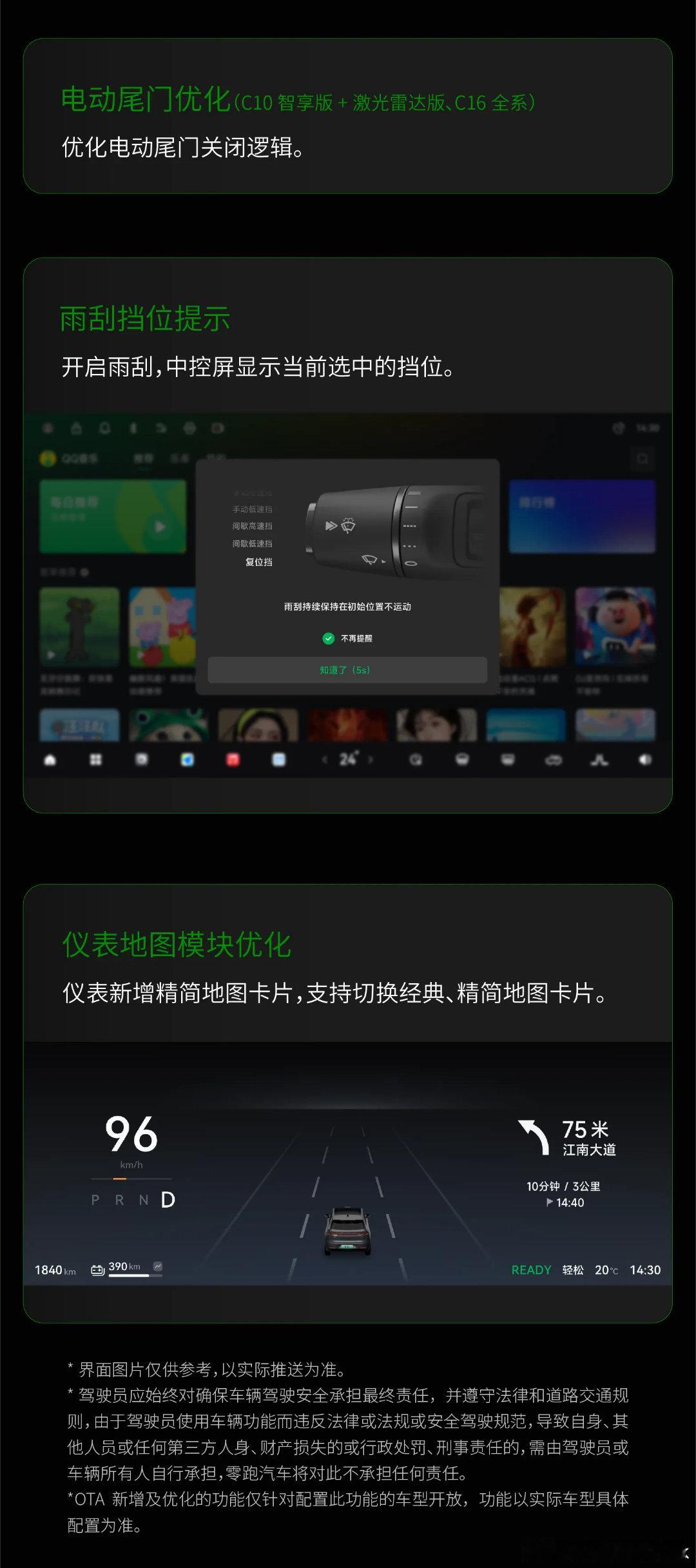 手机零跑APP会弹消息,车里屏幕也会提示有新升级,点进去能先看看这次更了啥,啥时候有空啥时候升就行。