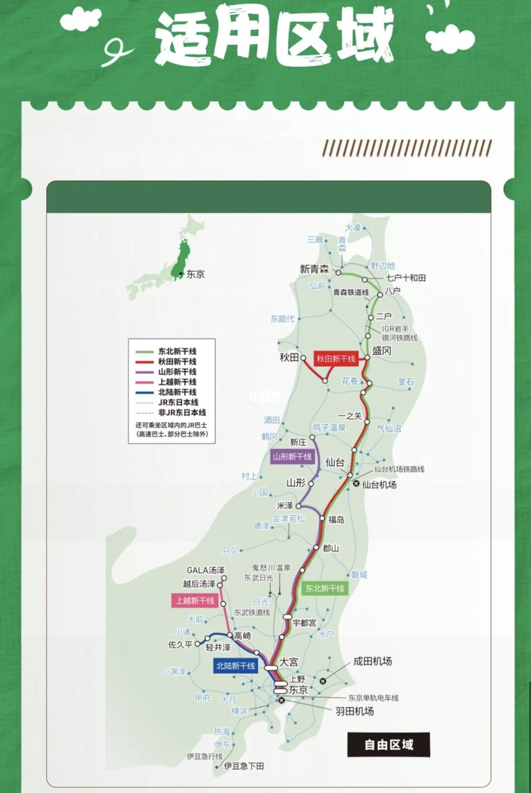 👉 适合玩东北地区,东京都内的JR线也可以使用的,不适用于北海道哦~