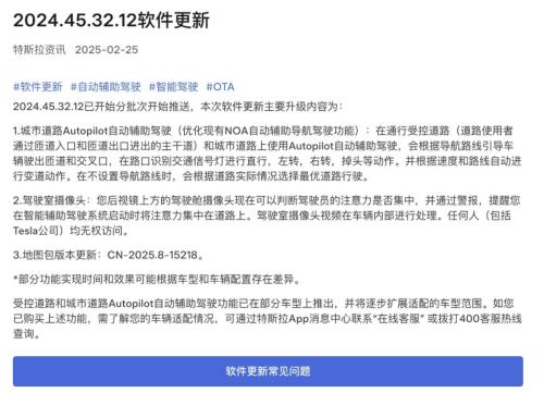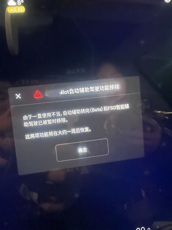 2月25日,国内有特斯拉车主发现,自己的APP上出现了2024.45.32.12版本软件更新,主要升级内容为:城市道路Autopilot自动辅助驾驶(优化现有NOA自动辅助导航驾驶功能)、驾驶室摄像头、地图包版本更新。FSD正式入华,但名字却悄悄地被修改了。特斯拉中国官网将这套智驾配置的定义从“FSD 完全自动驾驶”改为“FSD 智能辅助驾驶功能”。FSD在中国的选装价格为6.4万元,是当前中国市场最贵的智能驾驶系统,增强版自动辅助驾驶功能EAP也要3.2万元。但有些车主的速度更为惊人,已快进到被封禁使用的阶段,昨天开始推送FSD,当晚就被特斯拉封禁。 网友分享的图片显示,该车主车机弹窗提醒“由于一直使用不当,自动辅助转向(Beta)和FSD智能辅助驾驶已被暂时移除,这两项功能将在大约一周后恢复”。【来自懂车帝车友圈】
