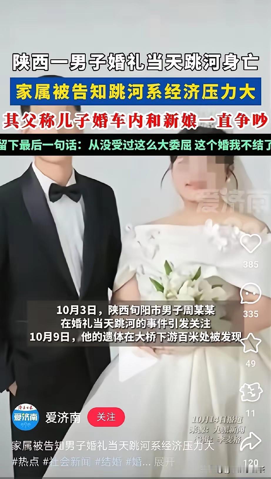 新郎结婚当天跳河自尽好像有了结果,新郎父母不追究女方责任,女方已经退了彩礼和六金,事情似乎就要过去了,可是还是让人想不明白。 新郎新娘是有感情的,他们认识七年,从校服到婚纱,而且新郎高大英俊,外形上比新娘略胜一筹,新娘对新郎应该是满意的。 即使新郎父母当初不同意这门婚事,那也是过去的事了,毕竟还是结婚了,父母不同意都没有难倒新郎,还有什么事能让新郎结婚当天就投河自尽呢? 看新郎新娘的照片,两个人情投意合,很是甜蜜,再看他俩结婚当天在婚车上的合影,两个人情绪稳定,不见有什么异常。 现在最难受的应该是新郎的父母和新娘了,作为新郎的父母辛辛苦苦养大的儿子,终于成家立业了,没想到出了这么大的事,大红的请柬还没有褪色,结婚本来是喜事却变成了丧事,新娘子因为这件事也会让人指指点点,因为在车上到底他们俩发生了什么,只有他们俩最清楚。 图自网络侵必删