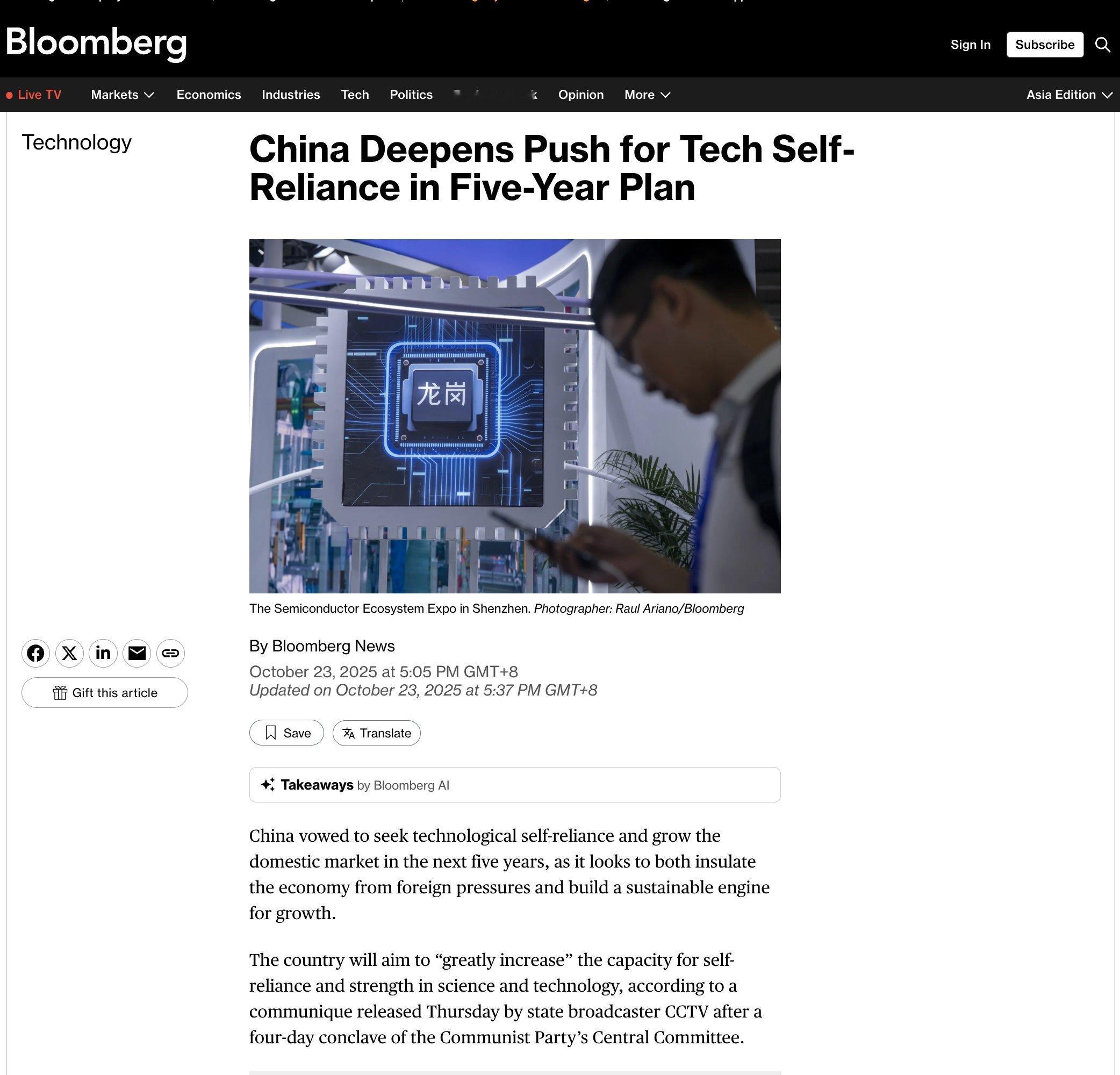 “科技自主创新”、“科技驱动增长”、“自力更生”……当地时间10月23日,这些关键词立刻跃上各大外媒重点报道的标题,它们纷纷对中国未来五年在科技领域的政策走向作出分析解读。