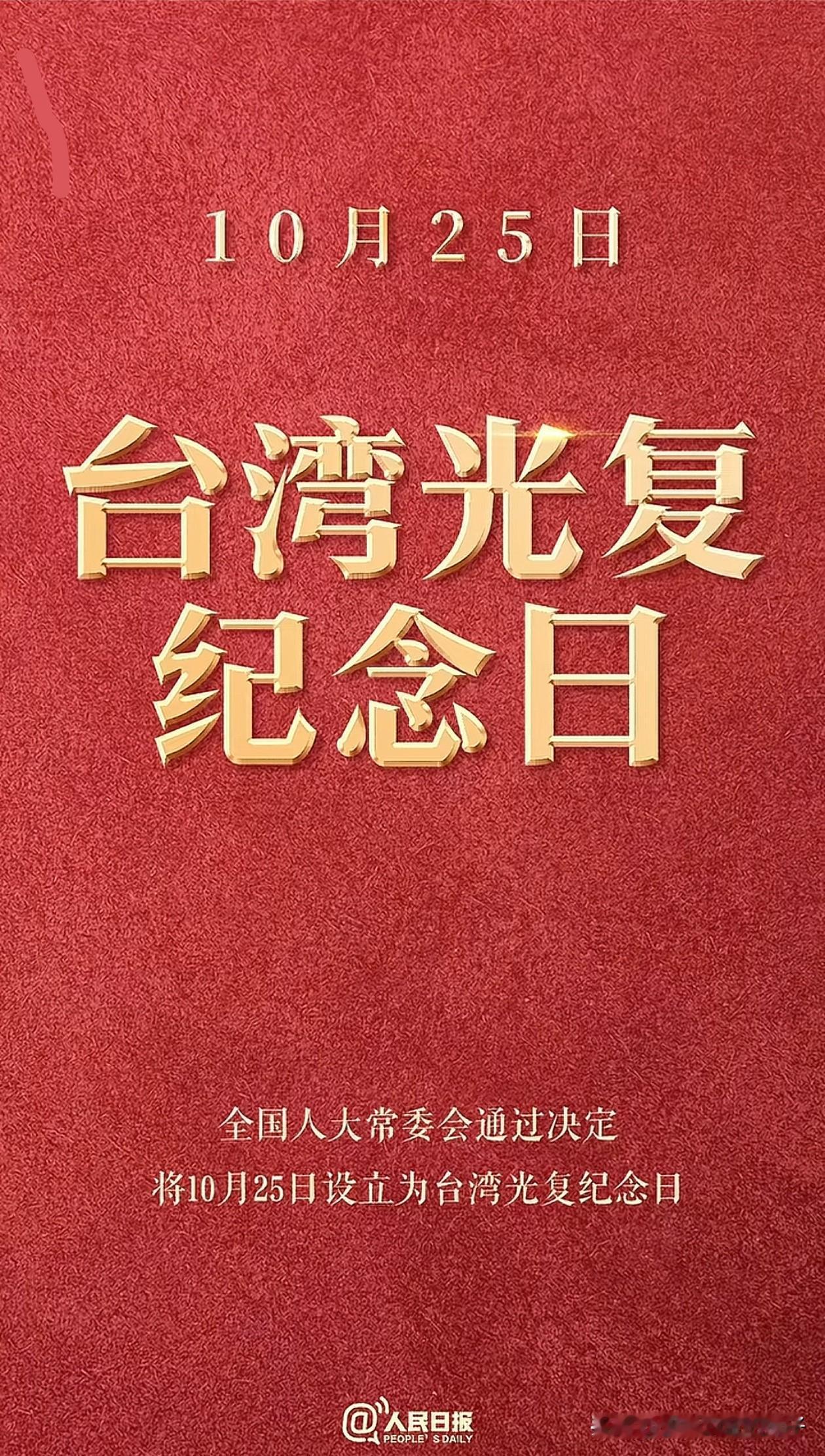 看到央妈宣布10.25为台湾光复纪念日,我决定做3件事来庆祝一下! 第一、多存一点钱,等以后条件允许了,带着家人去台湾旅游,感受一下当地的风土人情,看看不同的风光。 第二、列一个要打卡的景点,比如小学课本里的日月潭,还有琼瑶阿姨所在地阳明山公园,阿里山景区,还有台北的故宫博物馆,感受一下历史。 第三、如果有机会再和朋友去台湾开一家火锅店,让对岸的同胞们也能尝尝我们的美食,不然总觉得我们没啥好吃的。 为了表达一下我的心情,明天中午就吃统一方便面和统一绿茶,大家觉得呢!