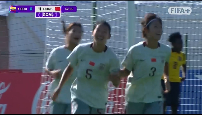 直播吧10月24日讯U17女子世界杯小组赛C组,厄瓜多尔女足U17vs中国女足U17。比赛第43分钟,宋语角球后点破门,中国女足U174-0领先,赢球出线基本已经没悬念了。