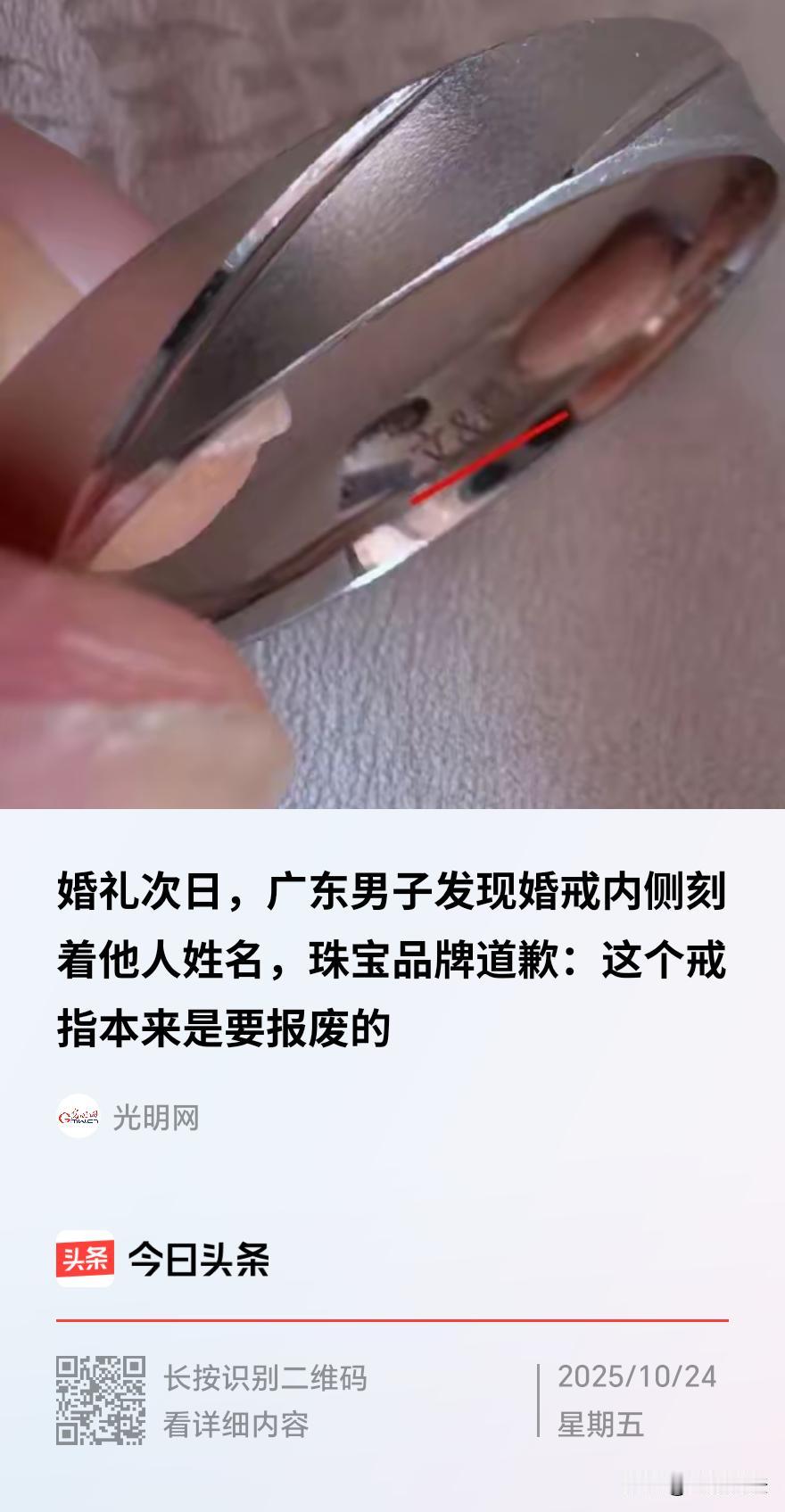 广东,一男子在婚礼后无意中发现婚戒内壁竟刻着“文&静”的陌生名字,这枚婚戒虽然才花费1760元,却是见证其与妻子爱情的信物,没想到,这是一件刻着别人誓言的“二手货”。男子找到商家理论,品牌方承认这是本应报废的问题戒指,因发货失误流入市场,并同意退换处理,加赠礼品一份。 据悉,小李(化名)是一名普通的上班族,性格踏实,对生活充满期待,他和女友小芳(化名)相恋多年,终于在2025年初决定步入婚姻殿堂。 婚礼定在10月16日,为了这场人生大事,小李早早开始准备,从酒店预订到婚纱摄影,事事亲力亲为。其中,婚戒作为象征永恒承诺的信物,他格外重视。 经过多方比较,小李在10月初通过电商平台在某品牌旗舰店下单购买了一枚男士素金婚戒,这款戒指标价1760元,设计简约,正合他的心意。 订单处理得很顺利,几天后,戒指就送到了他手中,打开包装时,小李仔细检查了外观,没有发现任何划痕,也看不出任何异常。 小李心想,这枚戒指将在婚礼上见证他和小芳的誓言,便小心翼翼收好,满怀憧憬地等待那一天的到来。 10月16日,婚礼在广东一家温馨的酒店举行,亲朋好友齐聚一堂,气氛热烈。 在交换戒指的环节,小李和小芳互戴婚戒,那一刻,掌声雷动,两人眼中满是幸福。 小李注意到戒指戴在手上有点紧,但他没多想,只觉得是激动导致的错觉。 婚礼结束后,他们回到新房,沉浸在甜蜜中。 10月17日,小李早起后觉得戒指箍得手指发麻,便取下来擦拭,阳光透过窗户照在戒指上,他无意中瞥见内壁似乎有刻字。 起初,小李以为是品牌标识,但凑近一看,竟清晰地刻着“文&静”三个字。 小李愣住了,这分明是两个人的名字,但绝不是他和妻子小芳的,他反复确认,戒指内壁的刻字工整清晰,像是定制留下的痕迹。 小李立刻叫来小芳,两人面面相觑,小芳安慰说可能是误会,但小李心里五味杂陈,这枚戒指本该是独一无二的爱情信物,现在却刻着陌生人的名字,难道自己戴的是“别人的二手婚戒”? 他回忆起购买过程,戒指是从官方旗舰店买的,价格不菲,怎么会出这种问题?小李是个理性的人,他先拍照留存证据,然后联系了商家的客服。 客服最初回应说,可能是发货错误,需要时间调查。 小李不甘心,又通过向媒体曝光来推动解决。而记者介入后,品牌方的态度才有了转变。 10月23日,商家的售后工作人员承认,经过核实,这枚戒指本应是“报废品”,却在发货流程中错误地送到了小李手中。 工作人员解释说,临近双十一,平台订单量大增,出货环节可能出现了疏漏。 最终,商家同意退换货,外加赠送一份礼品作为补偿。 平台方也坦承:“商家是做错的一方,毋庸置疑。” 那么,从法律角度,这件事如何评价呢? 《民法典》第五百零九条规定,当事人应当按照约定全面履行自己的义务。当事人应当遵循诚信原则,根据合同的性质、目的和交易习惯履行通知、协助、保密等义务。 小李在婚戒品牌方旗舰店下单,双方达成了婚戒买卖合同,小李付款后,商家有义务提供无瑕疵的婚戒。 婚戒作为一种具有特殊象征意义的商品,其唯一性、全新性是合同默示的、根本性的要求,小李购买婚戒理应是“一枚全新的、无任何他人印记的婚戒”,而收到的却是“刻有‘文&静’字样的、本应报废的戒指。 显然,商家交付的婚戒存在严重瑕疵,构成严重违约。 《民法典》第五百八十二条规定,履行不符合约定的,应当按照当事人的约定承担违约责任。对违约责任没有约定或者约定不明确,……受损害方……可以合理选择请求对方承担修理、重作、更换、退货、减少价款或者报酬等违约责任。 对于小李而言,其既可以选择解除合同,要求退还价款,并返还婚戒给商家,也可以选择要求商家退换婚戒,重新供新婚戒,还可以选择保留婚戒,要求退还部分价款。 不过,《侵害消费者权益行为处罚办法》第五条 经营者提供商品或者服务不得有下列行为:……(七)在销售的商品中掺杂、掺假,以假充真,以次充好,以不合格商品冒充合格商品;…… 商家发货的婚戒是报废品,虽然商家声称是工作人员出现错漏导致,但这毕竟是一家之言,仍不排除是商家存在重大过错,甚至故意以次充好的可能。 如查实商家存在大量类似行为,合理推定商家涉嫌故意以次充好行为。 结合《消费者权益保护法》第五十五条规定,小李作为消费者有权主张退一赔三,除要求返还1760价款外,还可以主张赔偿5280元。 此外,小李在协商不成的情况下,可以选择向市监局投诉,由市监局对商家采取整改、罚款等处罚,也可以选择提起民事诉讼,主张民事赔偿。 同时,电商平台如明知或应知商家有侵害消费者行为,不采取关闭店铺等措施的,小李在有证据情况下,也可以主张电商平台承担连带赔偿责任。 对此,您怎么看?