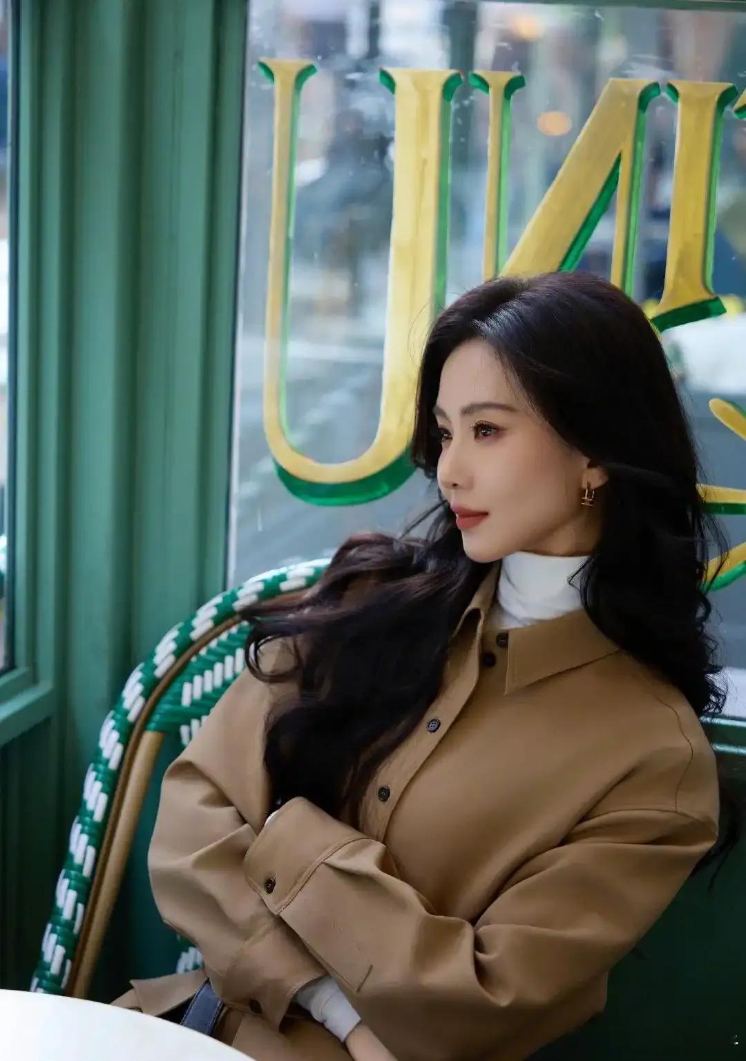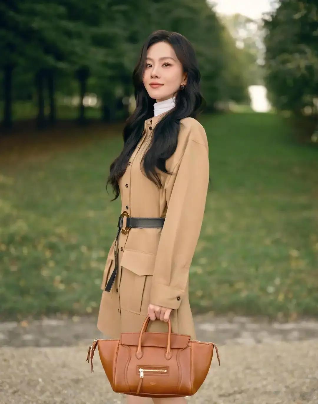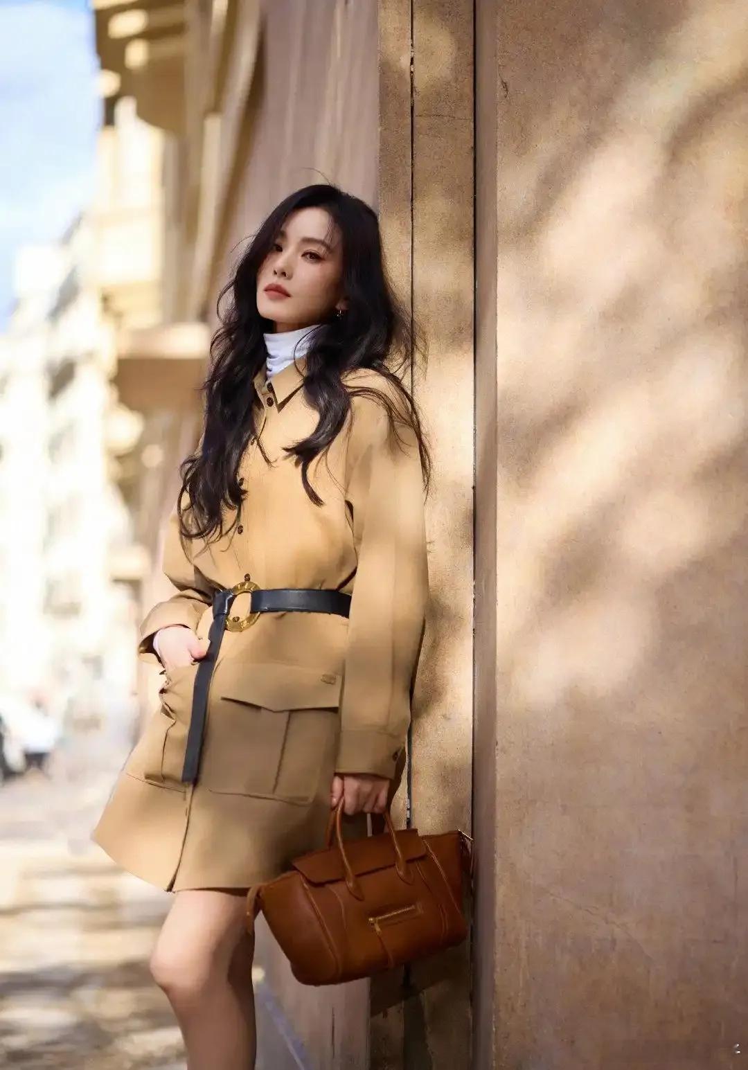 刘诗诗的气质真是出挑穿驼色外套内搭白色打底衫,简约又高级!