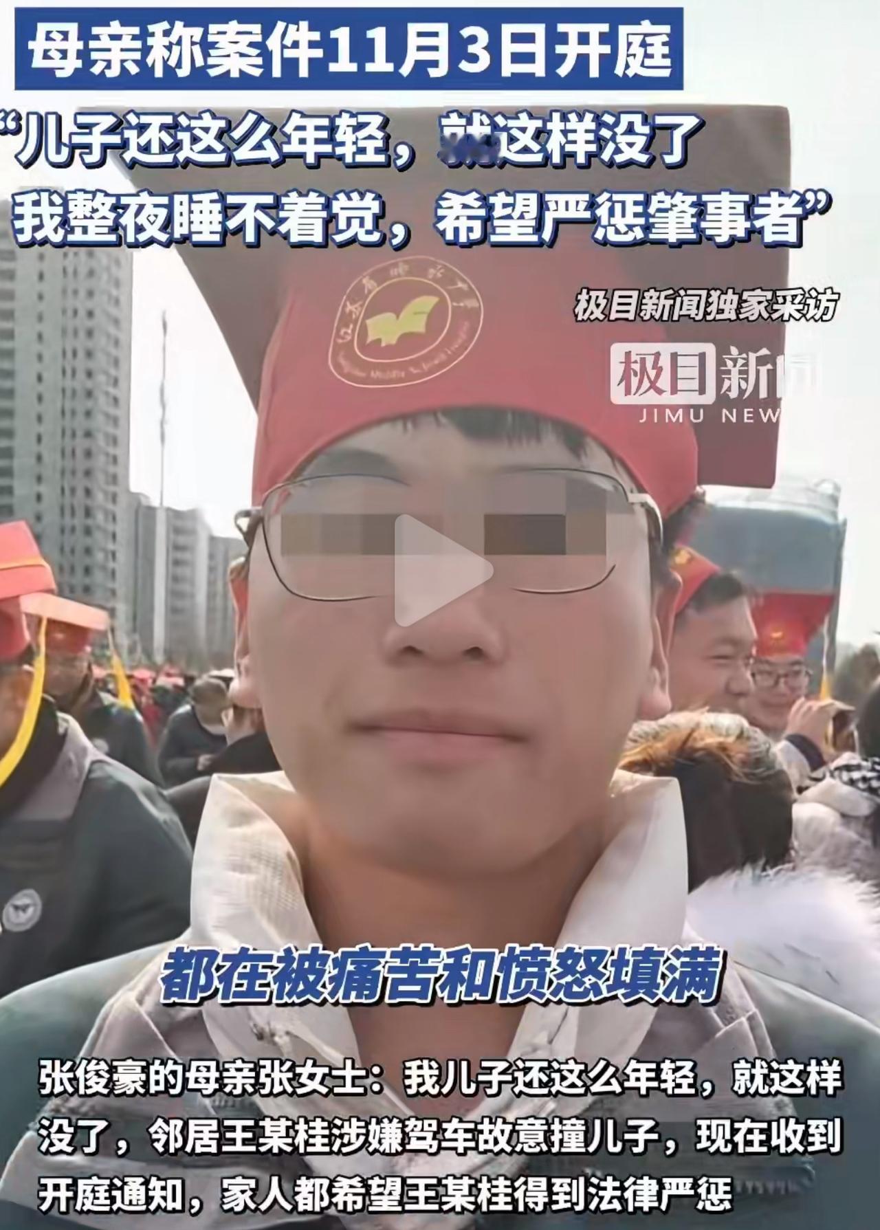 高三男生被邻居撞飞70米没了!妈妈抱着儿子玩偶哭:一分钱不要,就得他偿命 20岁的张俊豪,高三念完就该去上大学了,可就在盐城老家那条乡道上,被邻居王某桂开车从背后撞飞70多米——我刷到这事儿时,心口一下子闷得慌,气都喘不匀。 那天他骑电动车回学校,王某桂开着车,没直走,绕到他身后突然猛踩油门。监控里看得清清楚楚,孩子整个人“砰”一下飞出去,摔在地上一动不动。送医院后躺了一年多,颅内损伤、器官都衰竭了,今年夏天还是走了。他妈妈后来对着镜头,怀里抱着儿子没带走的玩偶,哭得上气不接下气:“我每分每秒都恨,一闭眼就看见他被撞的样子,整夜整夜睁着眼到天亮。” 谁能料到,好好的孩子说没就没,说到底竟是两家老人为块地界吵嘴结下的仇。他妈妈讲,早先王某桂家就撂过狠话“要报复到孙子身上”,一开始他们天天接送孩子,过了些日子觉得没事,心一松没再盯着,哪成想这灾星真就砸到孩子身上了。律师说这不是失手,是故意报复,警方一开始按“故意伤害”立案,后来改成“故意杀人”,那张传票递到手里,每个字都扎得人心疼。 下个月11月3号就开庭了,有人劝她趁机能要笔赔偿,她头摇得跟拨浪鼓似的:“钱有啥用?我儿子回不来了,就得让他(王某桂)抵命!”多好的孩子啊,去年就该背着书包去大学报到,现在却只剩一捧骨灰,房间里的书还摊在桌上,玩偶还等着主人回来。 邻里间争块地、拌两句嘴,再气也不能冲孩子下手啊!这哪是拌嘴,是把满心的戾气,全撒在了最无辜的孩子身上。就盼着开庭那天,监控、证据能说句公道话,别让这孩子白没了,也别让快哭垮的妈妈,连个撑下去的说法都没有。高三男生被邻居撞伤离世 蓄意报复