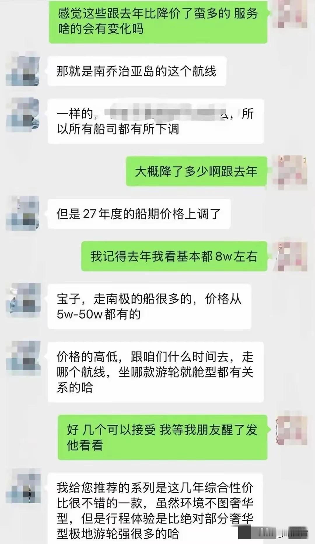 南极到底冷不冷?亲自去感受一下就知道了。 “南极游从20万降至5万”近日直接登上热搜,着实让不少人吃了一惊:以往想都不敢想的“天价之旅”,如今竟降到了这个价位?社交平台上相关帖子层出不穷,网友们既心动又犯起了嘀咕,这价格靠谱吗? 实际上,当下南极船票价格差异较大,从5万到50万都有,这取决于所选的船只和舱位。有平台表示,2025年同航线报价比去年便宜了两万多,尾单还能节省两三万。 有位今年2月去过南极的网友说得很实在,他11天10晚的行程大概花了5万。其秘诀在于选对了船——乘坐的是探险船,设施虽简单,但载客量少,每天能有6小时用于登陆巡游,性价比极高。 行程安排也有窍门,分段购买机票、借美国签证免签入境,节省了不少费用。最令人意外的是,他称南极没想象中那么冷,“还不如天津的冬天”,无需购买昂贵的装备,船方会赠送登陆靴。 更为关键的是,前往南极的中国人越来越多,2024 - 2025季首次突破万人,中国成为仅次于美国的第二大客源国。 这使得更多旅行社纷纷加入,供应商增长了30%以上,竞争加剧,价格自然随之下降。 不过,若想捡便宜可得抓紧了,今年的尾单已没那么诱人,5万多的船票大幅减少,起步价都要6万以上。有人认为5万可能只是船票钱,未算上机票和签证费用;也有人觉得只要选择合适的方式,性价比确实不错。 南极游价格下降是好事,但也需擦亮双眼。你觉得这价格水分大吗?若有机会,你会选择探险船体验,还是豪华邮轮呢?来评论区聊聊吧~