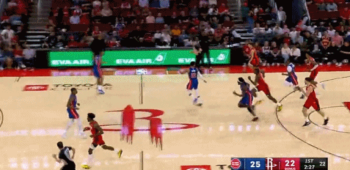 阿门・汤普森第1场对阵雷霆队的比赛,三分球7投0中;第2场对阵活塞队,吓得已经不