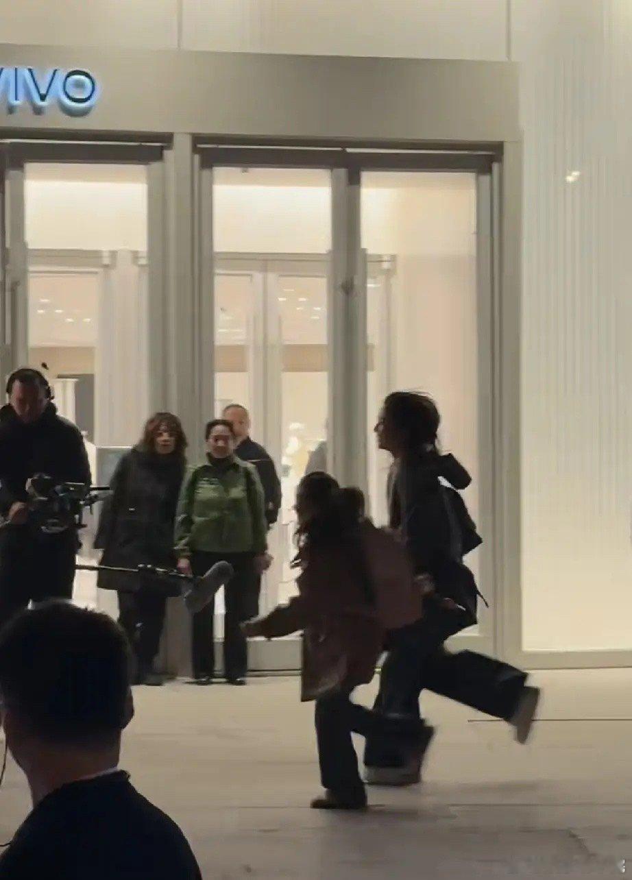 北京富力广场佟丽娅拉着小酒窝拍戏,跑得好快啊,二人像母女一样感情很好。
