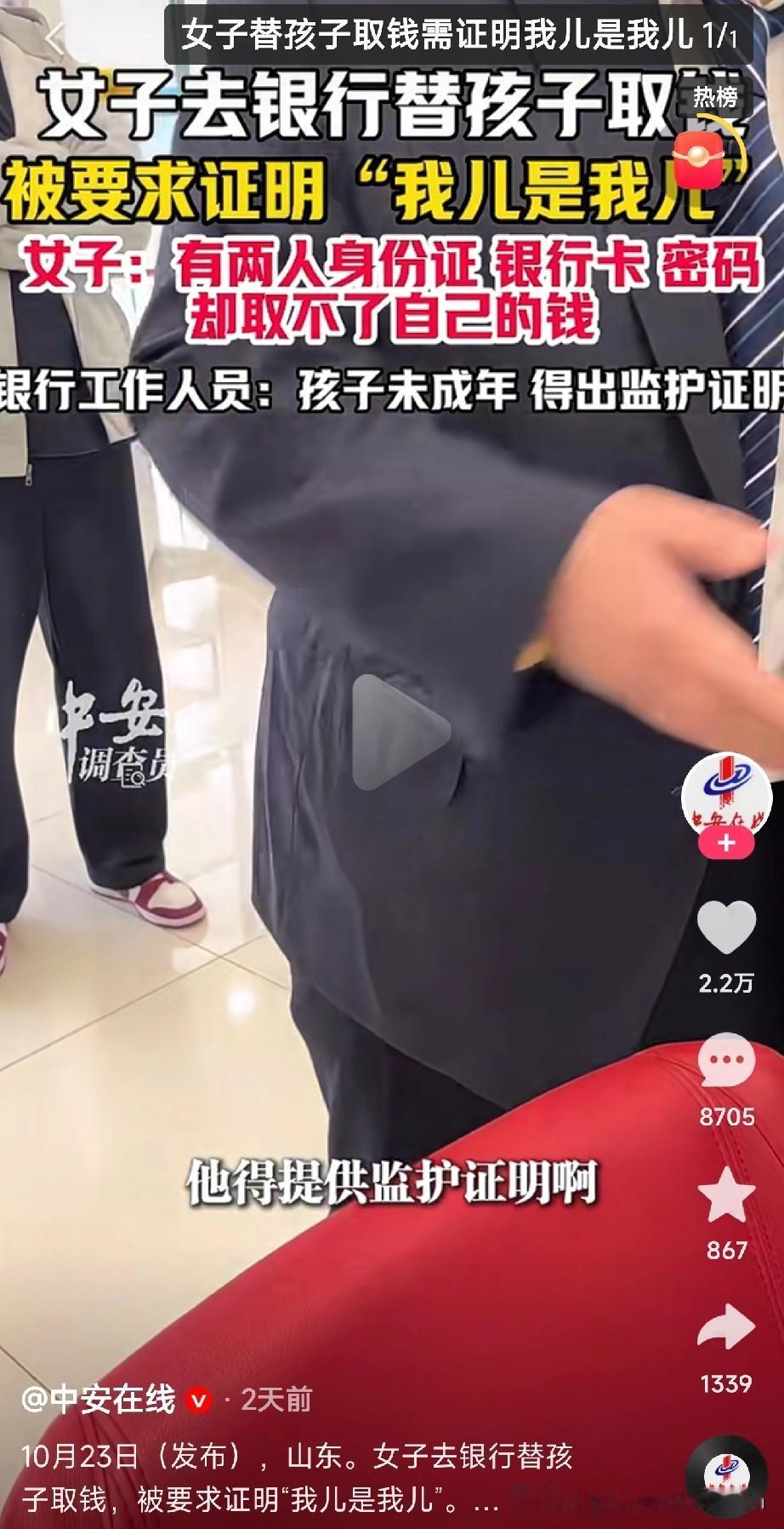 女子替儿子取钱,银行非要证明“我儿是我儿”! 监护证明到底去哪开? 今天刷