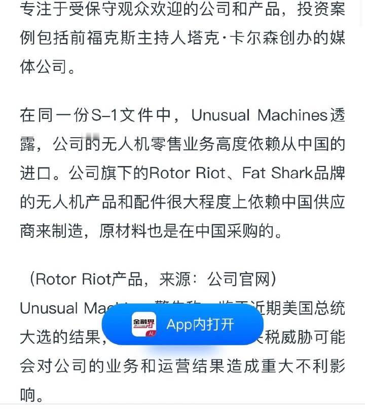 老特儿子小特的公司Unusual Machines获得了捂脚大楼的无人机配件供应合同,向三等人提供达标无人机配件,果然满门商业奇才!小特是去年11月才“入股”该公司的! 华强北订单快要来了![白眼][白眼] 老特,白房子改造工程是否充满一万卡能量?