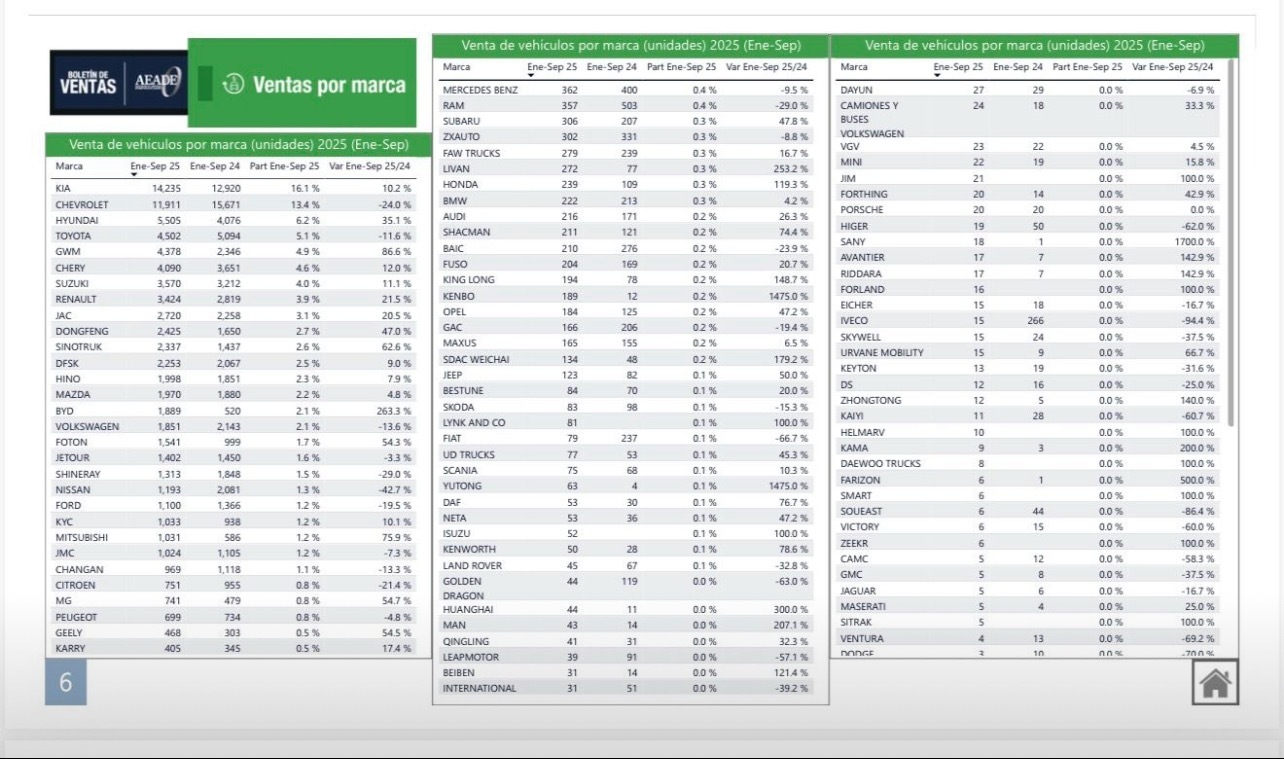 厄瓜多尔9月新车前10名: