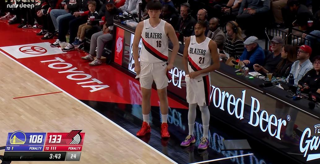 勇士vs开拓者比赛还有3分43秒,杨瀚森再次被换上场!!!