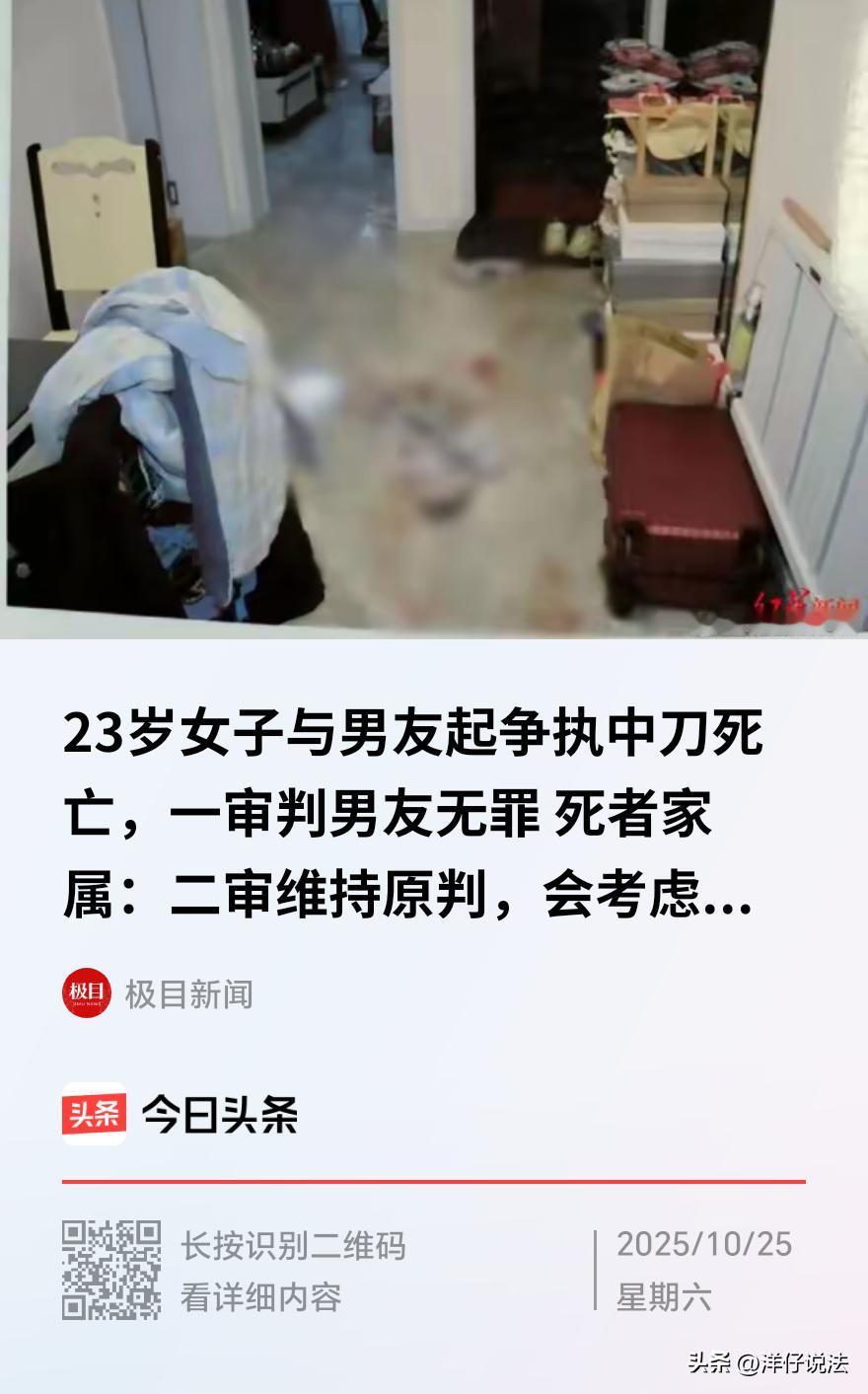 大连,一23岁女孩与男友饮酒后爆发激烈争吵,争执中,男友曾对女孩进行了殴打和辱 骂。据男友事后向警方陈述,女孩突然走进厨房,拿起一把水果刀,说了一句“我怎么对不起你了”,随即撩起衣服将刀刺入自己左 胸。男友吓坏了,立即拨打120,因担心延误,与父亲用面包车将她送往医院。途中,他们的车辆与赶来的救护车擦肩而过,女孩被送达医院时已生命垂危,最终不治身亡。案发后,因刀具被血迹污染无法提取指纹,而创口特征又显示“本人可以形成”,始终无法排除他杀可能。最终,因证据不足,法院两审均判决男友无罪。 据悉2022年4月26日凌晨1点36分,某医院急诊室迎来一辆疾驰而来的面包车。车门打开,一名年轻女子被抬下,她左胸插着一把水果刀,已无意识。 陪同的男子浑身颤抖,声称女友“自杀”。两小时后,23岁的徐园(化名)被宣告死亡。送医者正是徐园的男友单某(化名)。 两人相识于2022年2月12日,经人介绍恋爱,案发前刚同居半个月。 2022年4月25日晚,单某、徐园与朋友在烧烤店、歌厅饮酒至次日凌晨。 回家途中,二人在超市购物后发生争执,矛盾从室内蔓延至楼道外,单某对徐园进行了“言语侮辱和殴打”,导致她头面部、双下肢多处挫伤。 凌晨时分,二人返回住所。 单某事后称,徐园洗澡后因“煮方便面”一事与他争执,他摔门而出,徐园仅裹浴巾追出。在楼前空地上,单某击打徐园并将其拽倒在地。最终,两人一前一后回家。 徐园进门后穿上白衣,走到厨房水池边拿起水果刀,说了一句“我徐园怎么对不起你了”,随即撩衣将刀刺入左胸。 单某见状,立即拨打120,并呼叫同住小区的父母。因担心救护车延误,单某与父亲用面包车送医,途中与赶来的急救车擦肩而过。 遗憾的是,案发现场无目击者,唯一能还原真相的只有物证与鉴定。 经现场勘验,徐园倒在厨房与客厅交界处,地面有染血浴巾,而水果刀因血迹污染致无法提取指纹,徐园上衣无破口,符合“撩衣自刺”描述…… 尸检报告显示,徐园系锐器刺切胸部致心脏、肺脏破裂大出血死亡,从创口特征、刀具走向等显示“本人可以形成”,但未排除他杀可能。 徐园曾因焦虑、睡眠障碍就诊,同事朋友称其提过抑郁症,但姐姐徐女士坚称“仅轻度焦虑”。 不过,单某在2014年因故意伤害罪获刑一年,缓刑两年,而缓刑期间犯聚众斗殴罪,被撤销缓刑,判四年两个月。出狱后,单某2021年因殴打他人被行拘15日。 单某的前女友证言称“酒后曾遭其殴打”,单父也承认案发前4天,徐园因被打来电求助,但二人很快和好。聊天记录中,单某曾对徐园说“你去死吧”。 鉴于侦查阶段,三次鉴定结果均无法排除他杀可能,警方以过失致人死亡罪移送检察院审查,而检察院以该罪提起公诉。 法院会如何判决呢? 《刑法》第二百三十三条,过失致人死亡的,处三年以上七年以下有期徒刑;情节较轻的,处三年以下有期徒刑。 庭审中,检察院认为,单某对徐园实施了“言语侮 辱和殴 打”,在实施上述危险行为后,单某对处于激动、悲伤情绪中的徐园,应当预见到其行为可能导致徐园情绪失控,进而做出极端举动。 单某在争吵过程中,未能有效安抚徐园情绪,特别是在返回家中后,对厨房内存放刀具的危险环境疏于防范,未能阻止惨剧的发生,存在过失,导致徐园死亡,构成过失致人死亡罪。 不过,《刑事诉讼法》第五十五条规定,……没有被告人供述,证据确实、充分的,可以认定被告人有罪和处以刑罚。”其中,“证据确实、充分”的标准之一就是“综合全案证据,对所认定事实已排除合理怀疑”。 法院认为,本案关键物证水果刀因血迹污染无法提取指纹,导致无法证明刀是由单某握持还是徐园握持。 而司法鉴定中心的结论是“徐园左胸部刺创本人可以形成”。这虽然不能100%排除他杀,但为“自杀”提供了法医学上的可能性,在存疑时,利益应归于被告人单某。 从衣着状态来看,徐园上衣无破口,符合“撩起衣服自刺”的描述,与他杀时通常直接刺穿衣物的情形不符。 事发后,单某采取了积极送医救助措施,这更符合试图挽救自杀者的慌乱反应。 关键是,现有证据不足以证明徐园与单某发生矛盾时产生轻生念头,单某无法预计自己的行为可能引发徐园持刀自杀的结果,不能据此认定单某存在过失。 此外,单某虽有暴 力前科,但一个人之前的劣迹或犯罪记录,不能直接作为本次定罪的证据,毕竟有作案可能和法律上被证明作案还是两码事。 基于此,一审和二审法院均认定单某构成犯罪证据不足,判决宣告无罪。 徐园家人对这样的结果仍不服,准备继续申诉。 此外,除了刑事追责外,徐园家人还可以尝试提起民事赔偿,民事诉讼中遵循高度盖然性标准,而不是排除合理性怀疑标准,有机会获得民事赔偿,以最大程度维护自身权益。 对此,您怎么看?