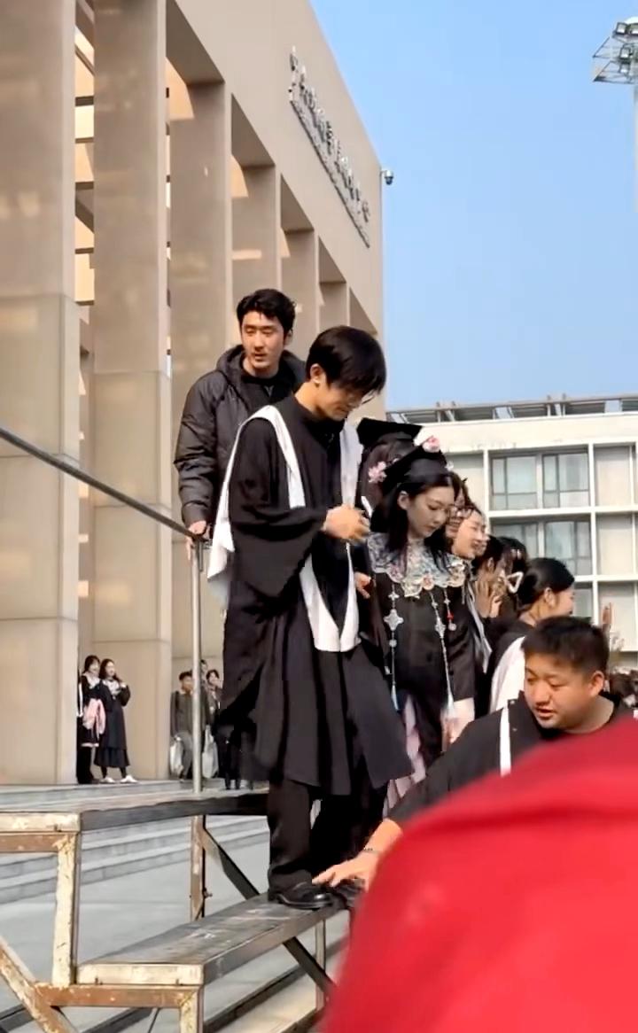 易烊千玺回中戏了! 千玺回中戏参加活动了,这个学士服是中戏特有的还是他们这一届特有的,不应该是粉领吗,和普通的学士服也不一样。