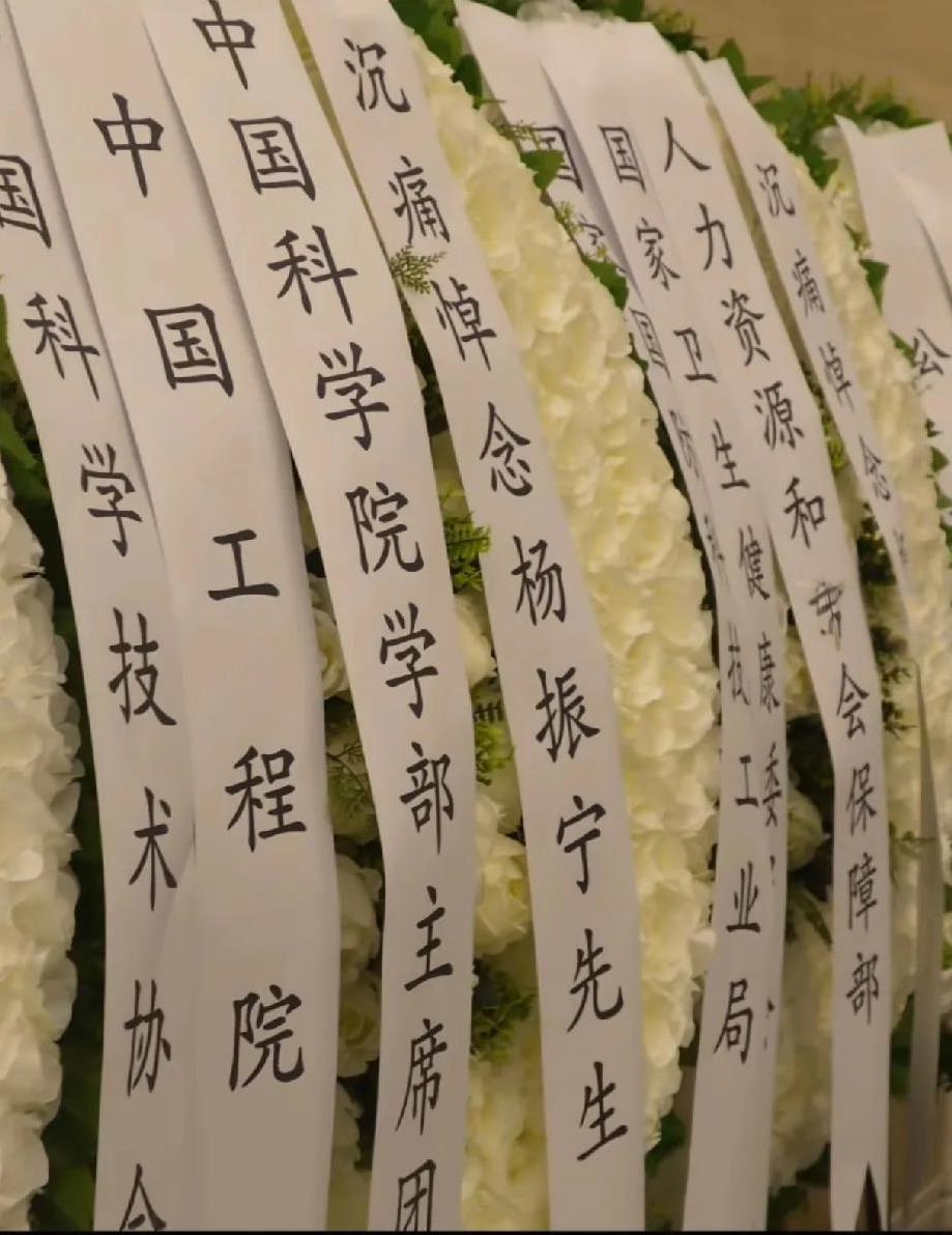有谁注意到杨振宁丧礼上的挽联了吗?含金量太高了,看都是出自谁之手,充分证明了杨振宁的社会地位。 中国工程院、公安部、科技部、人力资源和社会保障部、安徽人民政府、还有各个大学等等,挽联和鲜花多到放不下,还有各界人士自发送别。 他身盖国旗,这是多高的荣誉啊。 其实有这样的荣誉,和他这一生的成就与贡献分不开,杨振宁先生的一生是功在世界,心在家国,他的成就世人共睹,但成果却留给了我们! 国家层面的送别表示什么?说明对这个人的敬意早已超越学科范围,进入“民族标志”和“时代象征”的范畴。不仅是学术界一把手,更是国家认定的“国之重器”。 他这一生的研究成果,被社会、国家、时代公开承认。他不仅是在为自己研究,更为国家、为民族、为世界打开了一扇窗。 他做的不只是几篇论文,而是一种桥梁:中外学术的桥梁、过去和未来的桥梁、世界科学圈和中国科研圈的桥梁。国家机关贴挽联、高校送鲜花,这说明社会各界都认了这座桥梁不是“挂名”的,而是真的“承重”的! 看着满墙挽联就知道,真正的排面,不是看你能请来多少大腕,而是看你走后,国家愿为你覆上红旗,百姓愿为你写诗千行! 作为诺贝尔物理学奖得主,他提出的 “杨 - 米尔斯规范场论”,是现代物理学的基石之一,全世界的物理学家都得学他的理论。 可他没把成果藏着掖着,晚年回国后,不光在清华当教授,还到处奔走,帮中国引进顶尖人才,建实验室,硬是把中国的粒子物理研究拉到了世界水平。就凭这,他就配得上 “功在世界,心在家国” 这八个字! (每天更新,欢迎关注,喜欢文章的可以帮忙点个赞留条评~) 对此大家有什么看法?