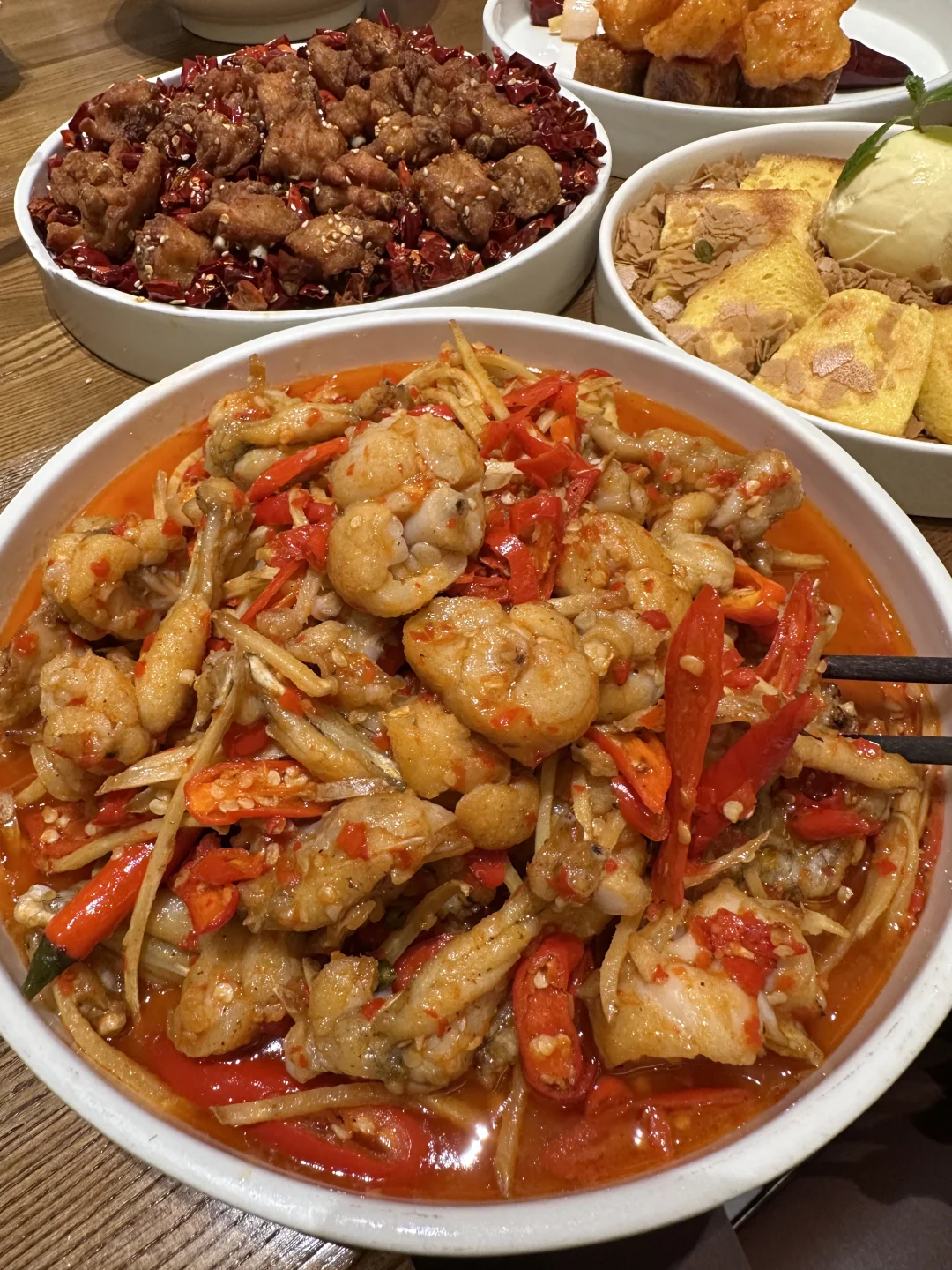 吃了很多次了 每次来科巷都会吃 芝麻鸡!!!香酥香酥的 石榴夹酸奶球 牛蛙都好好吃 现炒的,锅气十足