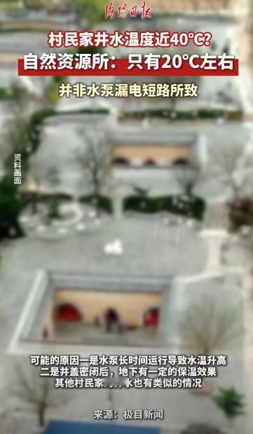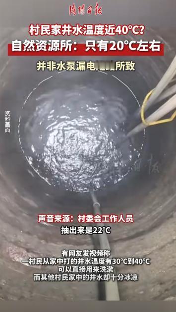 山西霍州,一村民发现自家打的井水温度非常高,大约有30到40℃,可以直接用来洗漱,但是其他村民家中的井水却十分冰凉。有关部门立即派人前往调查,发现水温在20℃左右,也没有发现水泵漏电。网友:底下有温泉? 山西霍州的一个清晨,天刚蒙蒙亮,王大哥(化名)像往常一样扛着扁担去井口挑水。 可当他弯腰把水桶提上来时,手刚碰到水就猛地缩了回去 ,这水怎么热乎乎的? 他以为是自己手冻麻了错觉,又试了一次,指尖传来的温热感真切得很。 他赶紧找了温度计一测,好家伙,水温竟在 30 到 40 摄氏度之间,直接用来洗脸刷牙都没问题! 又惊又慌的王大哥没敢耽搁,转头就把这事告诉了村里邻居。“老王家井水变热水了” 的消息像长了翅膀,没一会儿就传遍了整个村子,村民们又好奇又忐忑,议论纷纷:“这井水咋突然变热了?不会有啥怪事吧?” 消息很快传到了有关部门耳中,工作人员火速赶到现场勘查。他们围着井口仔细检查,先排查了井口周边的管线和水泵,反复测试后,排除了电器短路、水泵漏电导致水温升高的可能。 随后,工作人员拿着温度计在井口、井内不同深度反复测量,可这会儿测得的水温却恢复了正常。他们又挨家挨户去测其他村民家的井水,结果全是常温,压根没有 “集体变温” 的迹象。 为了弄清真相,村党委书记特意请来地质和水文专家现场 “会诊”。专家蹲在井口边观察许久,解释道:“二十多米深的地下水,受地温影响小,常年温度都很稳定,就算随季节波动,也不会短时间内剧烈变化,更不可能突然热到能洗漱。” 一番细致勘察和分析后,专家给出了科学解释。原来,王大哥家的井和周边村民的井,属于不同的地下水补给层和含水层 前一晚夜间,井内水体可能受到较浅地层温度或井筒太阳辐射残留热量影响,加上抽水时水流扰动,早晨井水上浮到井口时,温度就比周边井水稍高。 更关键的是,当时正值冬季,天气寒冷,人体对温度变化格外敏感,轻微的温差在手感上被放大,才让人觉得水 “明显偏热”。 专家还补充,要彻底放心,还得连续几天分时段测量,观察水温是否持续异常,必要时检测水质和地热流量,排除其他隐患。 听完专家的解释,王大哥悬着的心终于落了地,还笑着跟村民打趣:“早知道这样,我早上都不用烧水洗漱了,省了不少事!” 后来,他把这段 “井水变热” 的经历拍成短视频发到网上,一下子引发了网友热议。 有人半开玩笑说:“这是底下藏着温泉吧,王大哥要发了!” 也有人忧心忡忡:“会不会和地质活动有关?要不要提防地震啊?” 还有网友留言分享类似经历:“我家冬天井水也会比平时温一点,原来不是我错觉!” 针对网友的各种猜测,专家特意提醒:遇到这类自然异象,别盲目恐慌,也别轻信网上的猜测传言,最稳妥的做法是及时向当地部门报告,配合专业人员检测,用科学的方式查明真相。 其实王大哥家的 “热水井” 事件,就是一件充满生活趣味的小事。 它既藏着民众对自然现象的好奇,也给大家提了个醒:面对未知的异常,保持警觉是应该的,但更要守住科学的底线 。 对此,你还有什么看法呢? 信息来源 :极目新闻