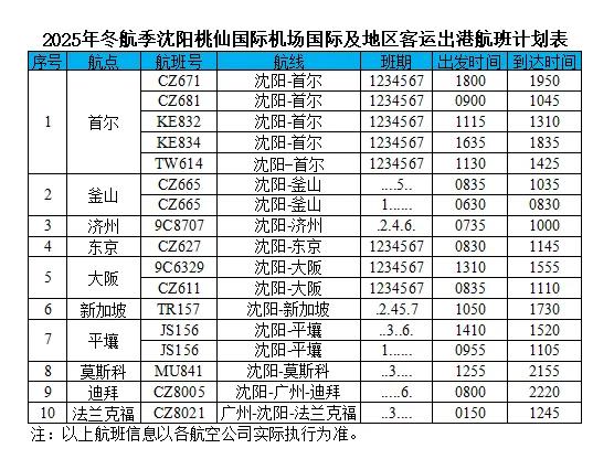 从26日开始沈阳桃仙机场将正式执行冬季出港航空时间表。届时沈阳到海口、三亚、昆明的航班将有所增加,这对于想要去南方避寒的辽宁老年人来说是个好消息。 稍微有些遗憾的是在冬季沈阳直飞香港、曼谷的航班没有了,因此从沈阳到这些地方只能中转了,目前来看就是这个趋势。
