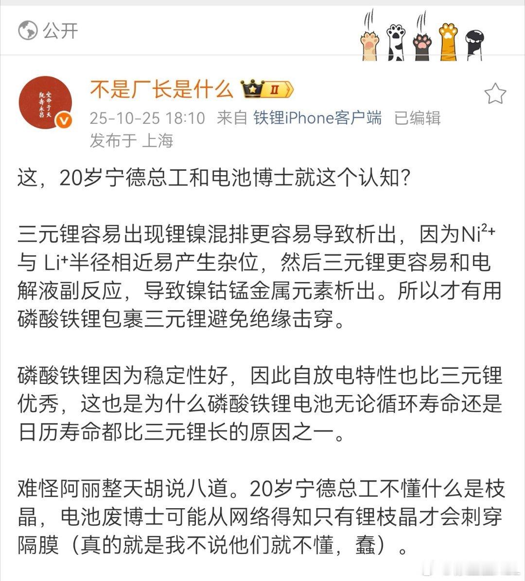 我也从来没否定磷酸铁锂。