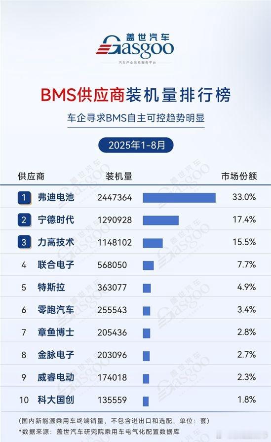 ~比亚迪的弗迪动力占据动力电池供应28.5%,电池包供应31.8%,电池管理系统供应33%。