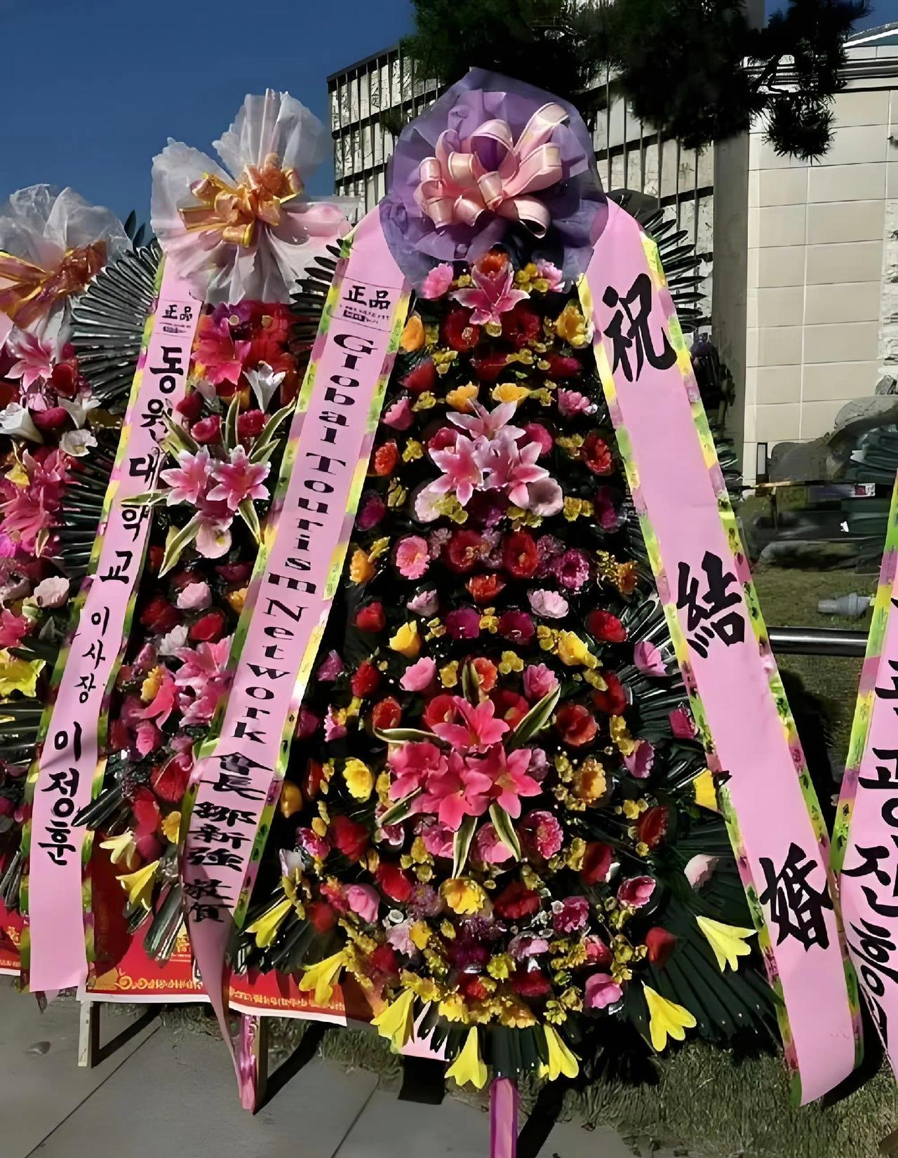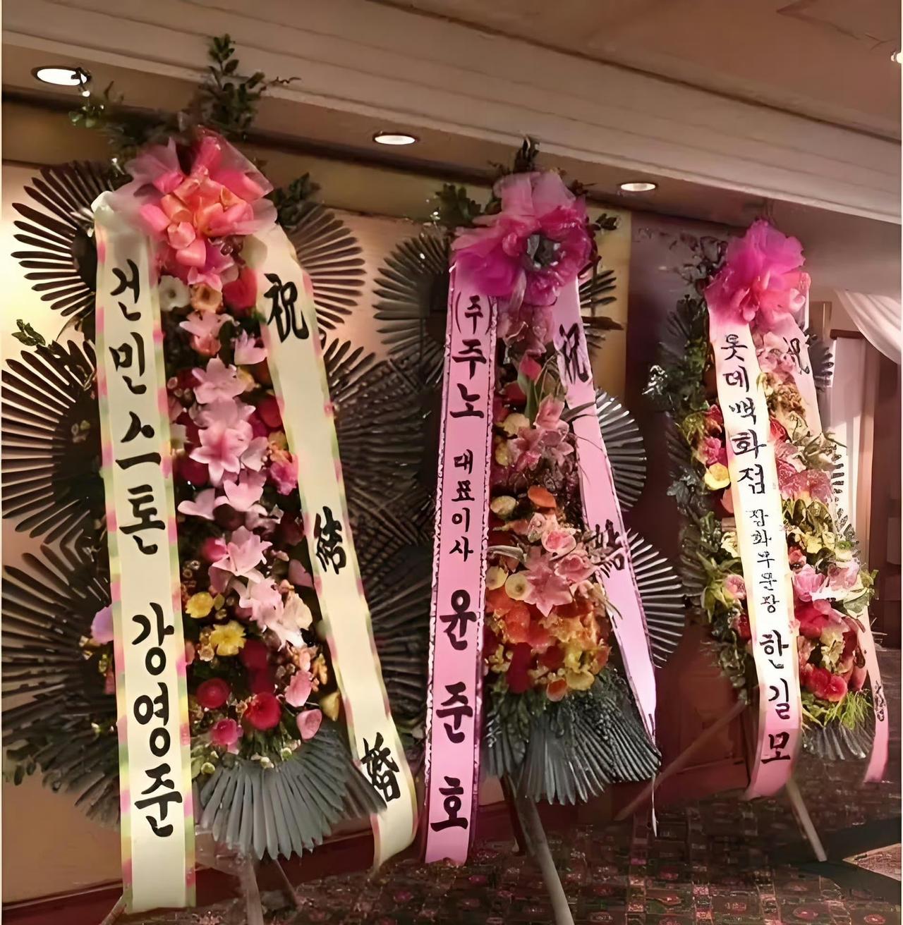 同样都是中华文化圈,深刻怀疑韩国当时抄作业的时候抄错了? 你说结婚的时候送花实际上这是能理解的,但是结婚的时候送花圈,而且花圈上还打上两条字,这就有点理解不了了。 关键是这上面的字还是汉字,一般情况下,右边是祝结婚,那旁边使用的是韩语书写的相关的祝福之类的。 这是不是学的时候学劈叉了?各位是怎么看的?欢迎评论区留言。
