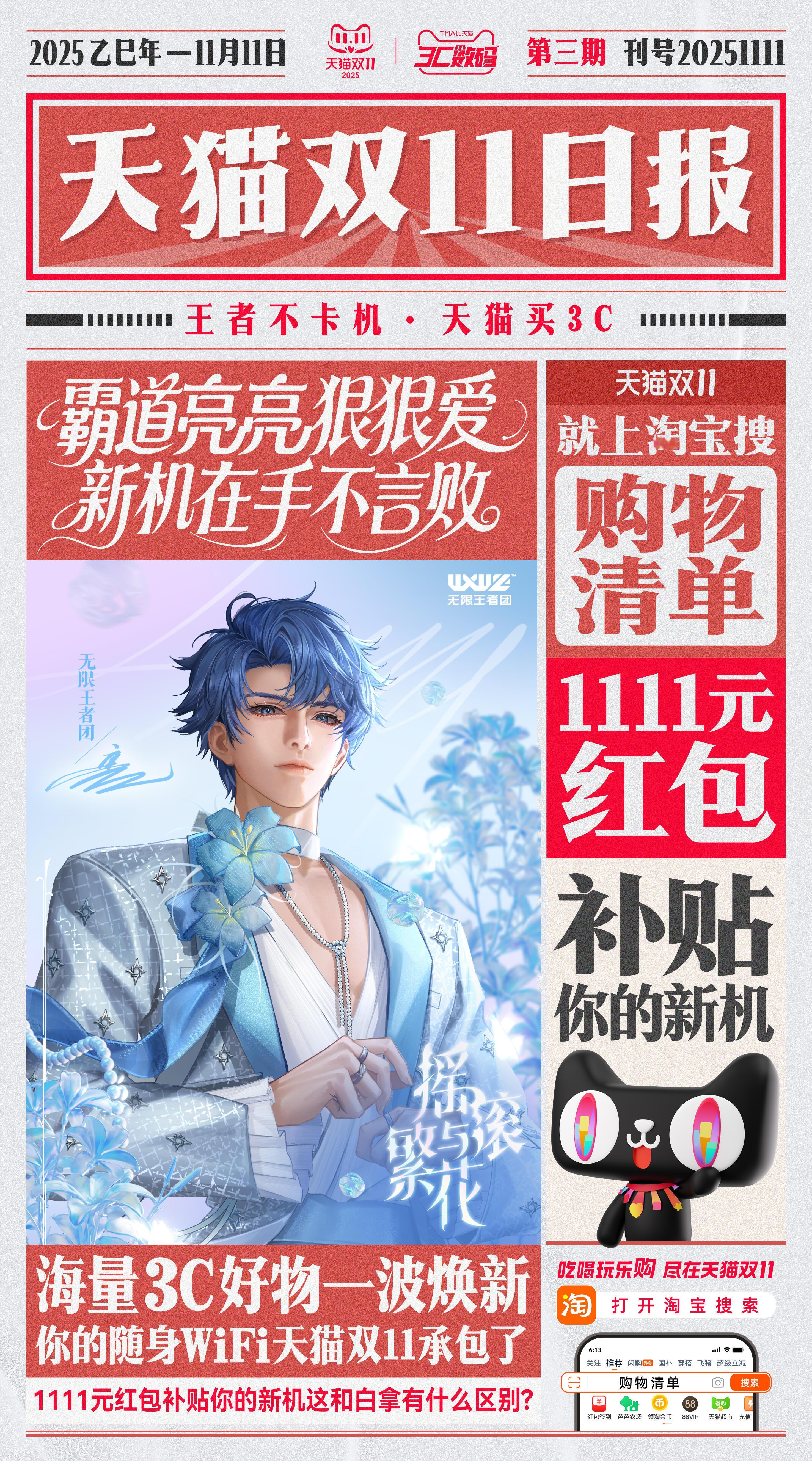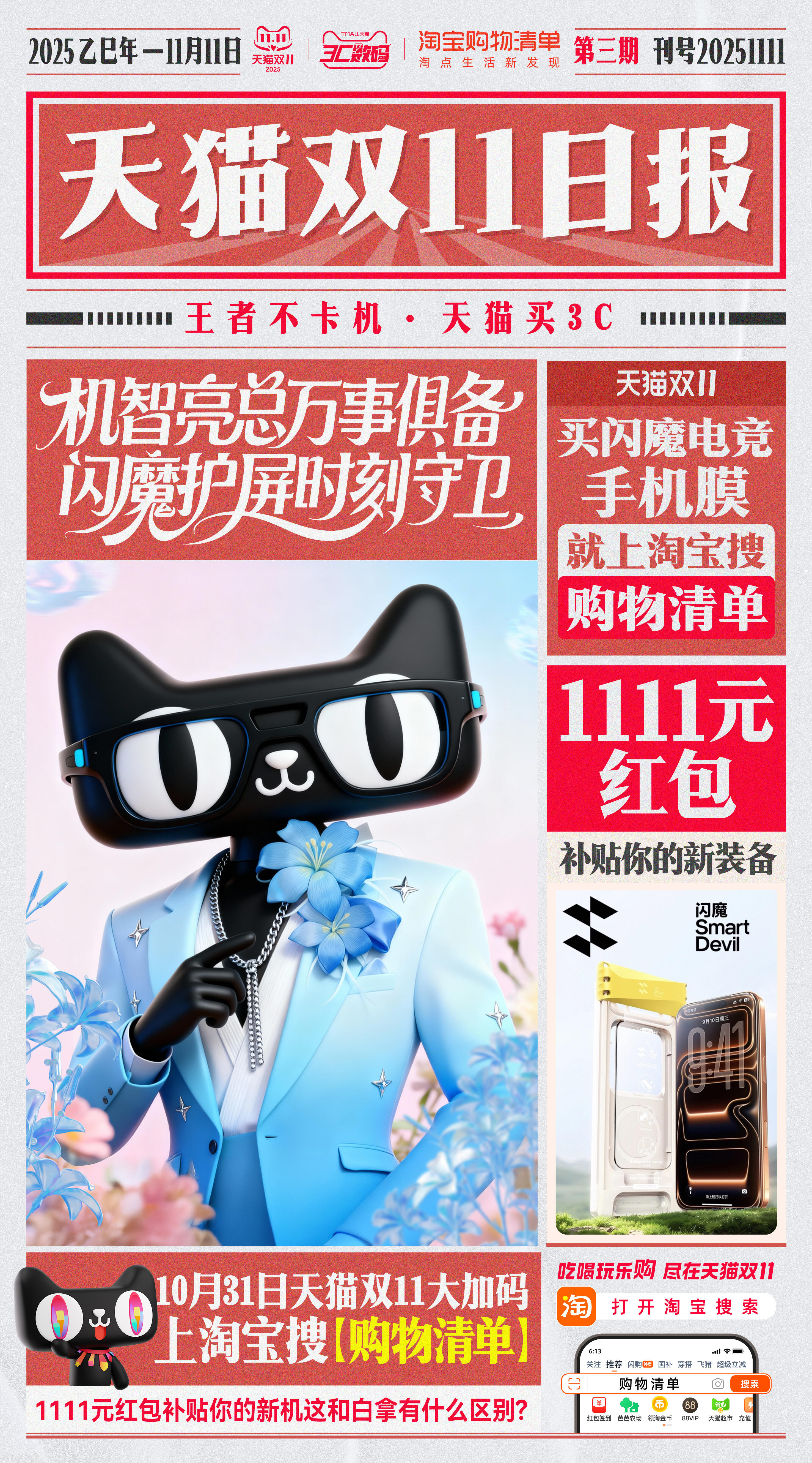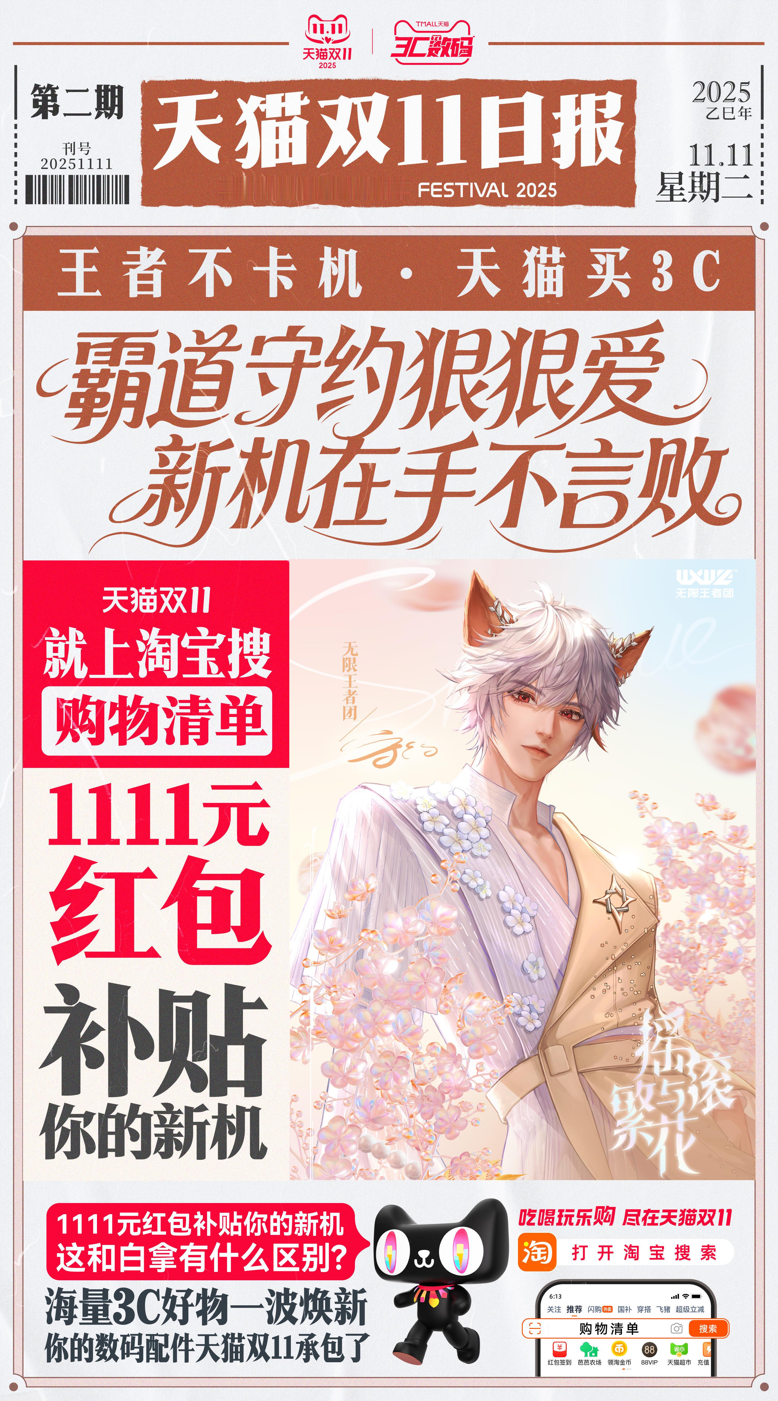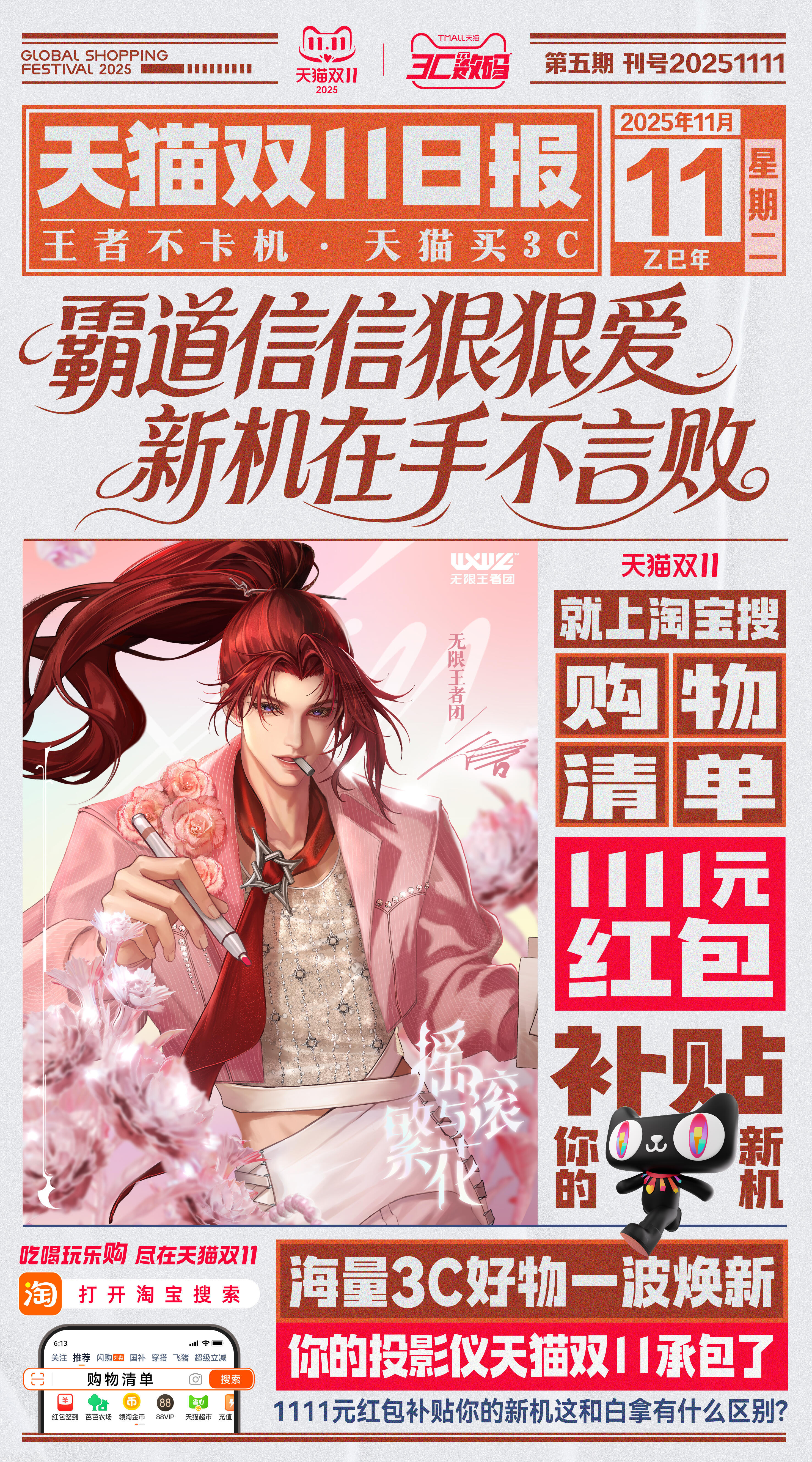 霸道守约、霸道白白、霸道亮亮、霸道信信、霸道云云带着3C大牌子来啦!猫天天漏腹肌带货这波事业心我狠狠respect!上淘宝搜【购物清单】,3C折扣和至高1111元红包已就位!双11王者是天猫 懂了,这就去换新机,打王者不掉链子!双11爆款一网打尽 ​​​