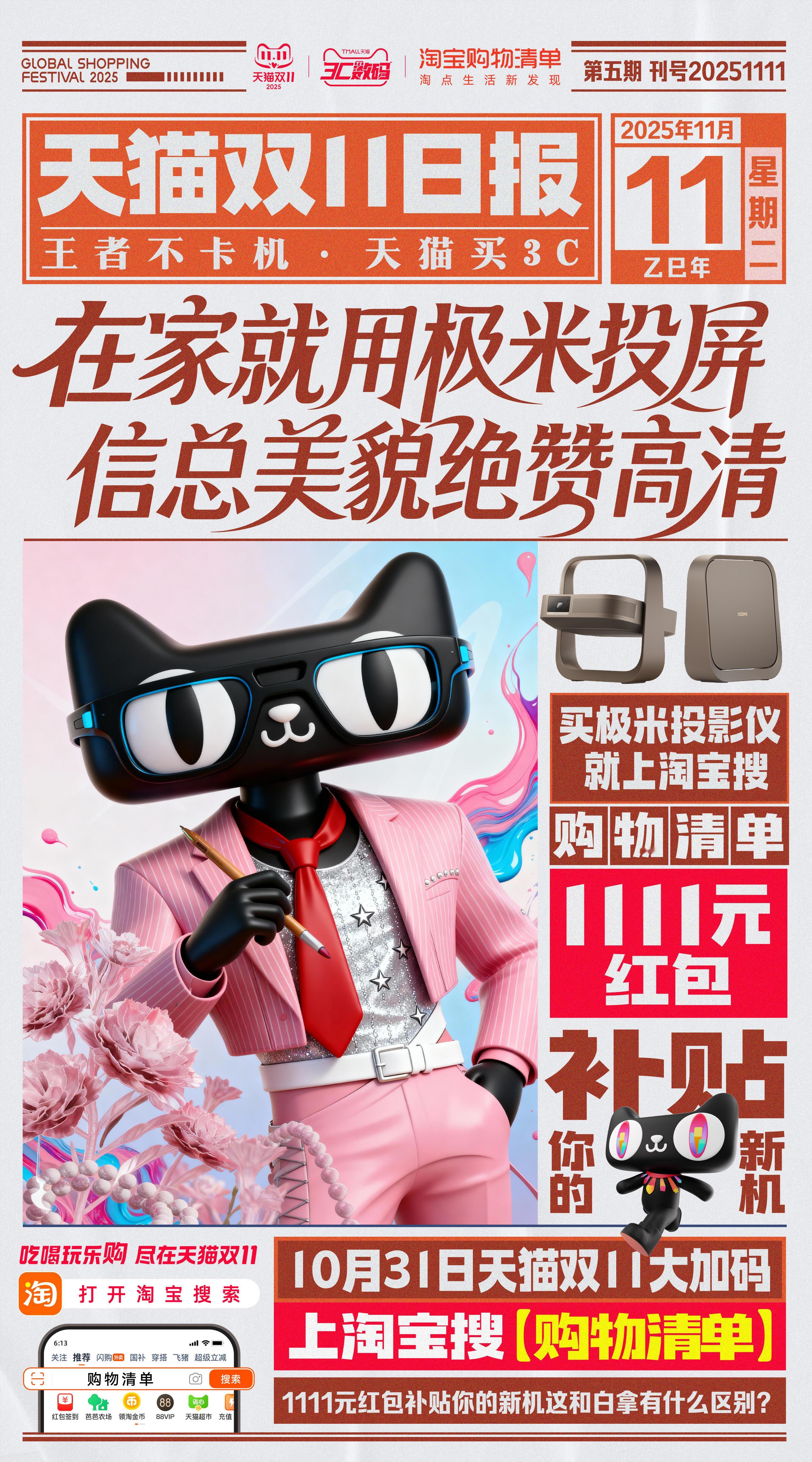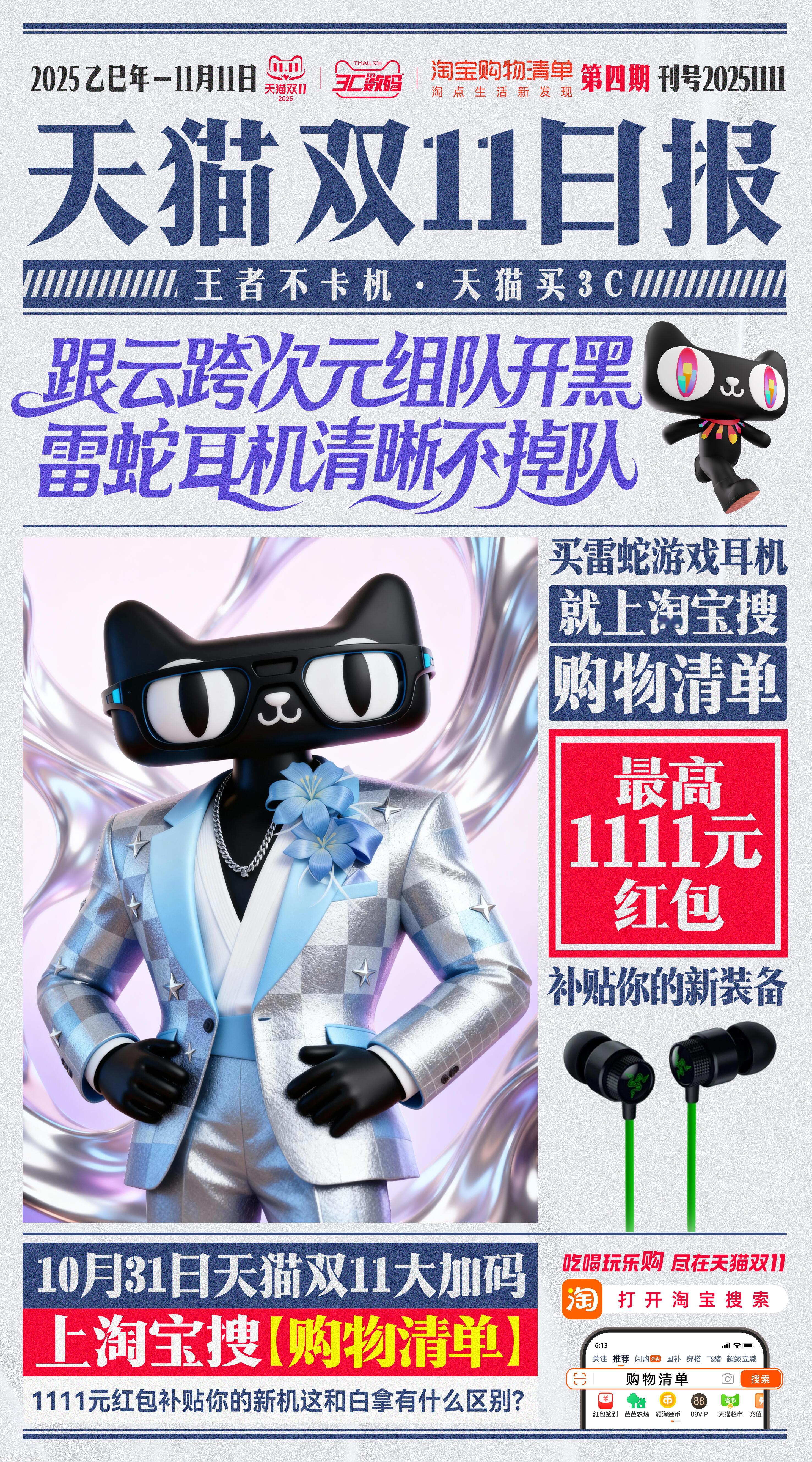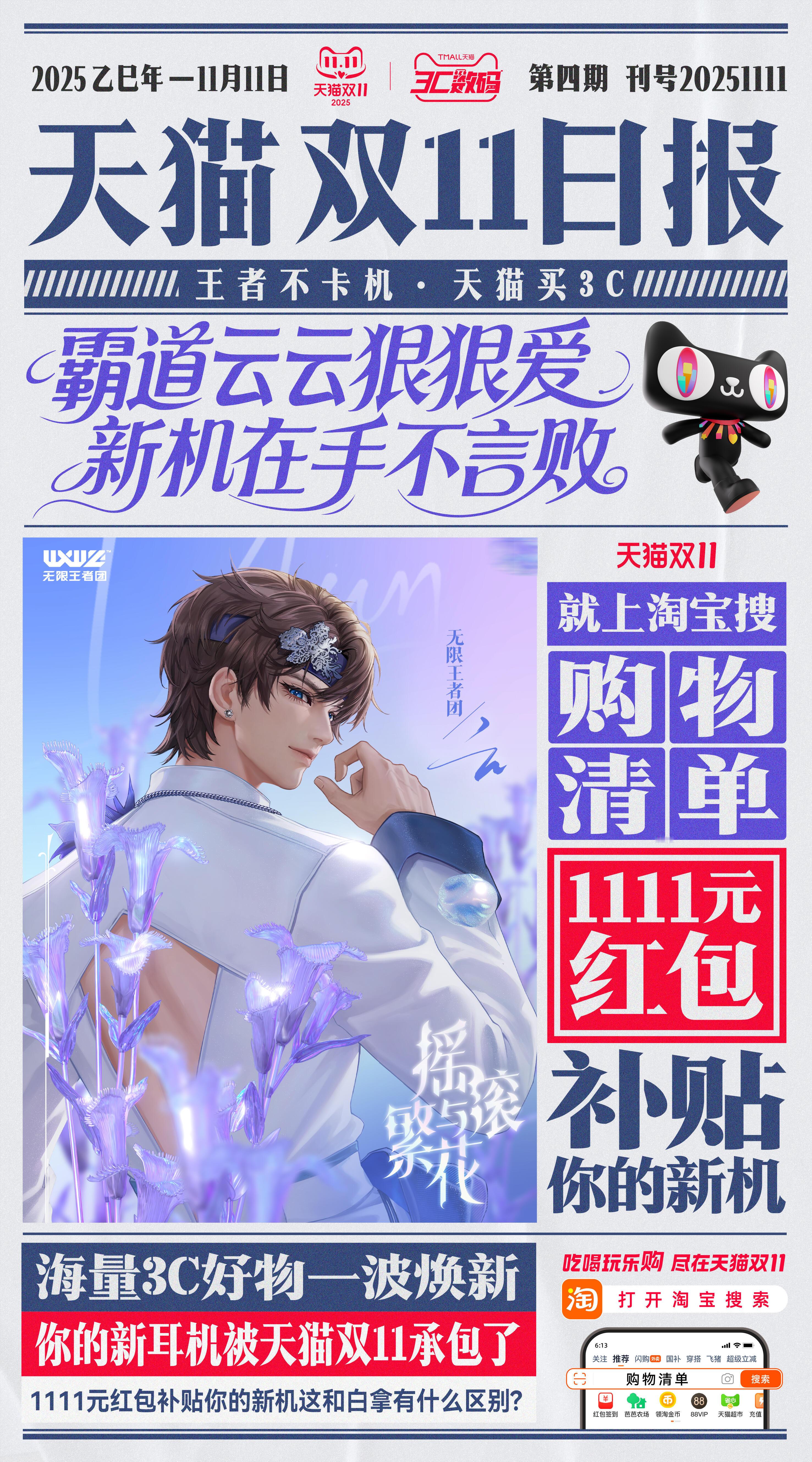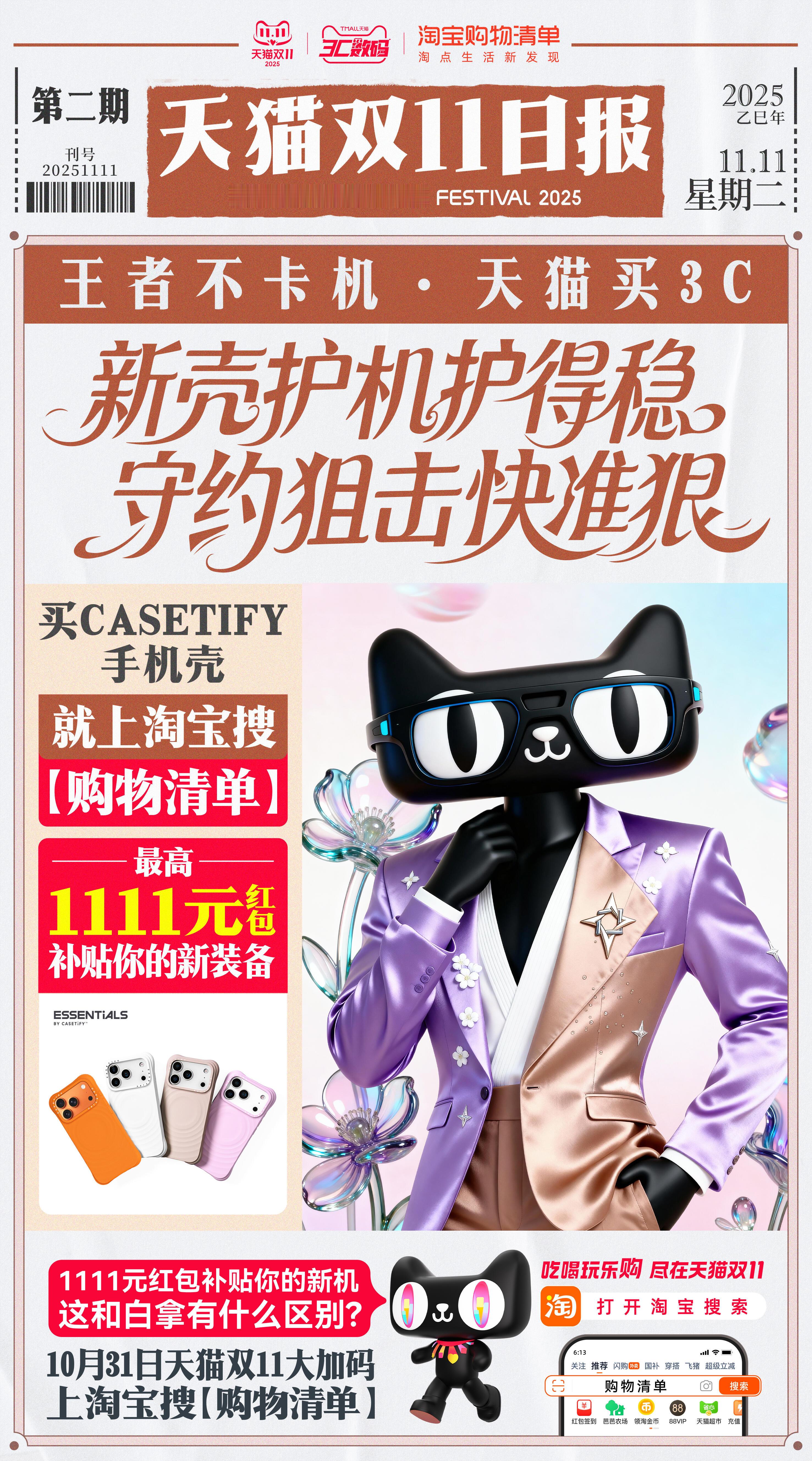 霸道守约、霸道白白、霸道亮亮、霸道信信、霸道云云带着3C大牌子来啦!猫天天漏腹肌带货这波事业心我狠狠respect!上淘宝搜【购物清单】,3C折扣和至高1111元红包已就位!双11王者是天猫 懂了,这就去换新机,打王者不掉链子!双11爆款一网打尽 ​​​