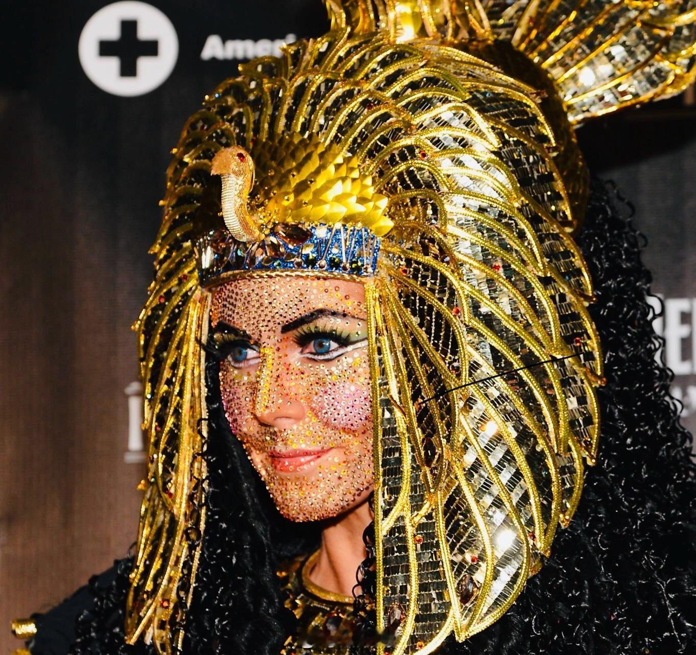 MrWG[超话]旧相簿子 密恐慎点![阴险]超模Heidi Klumheidi klum 2025的Halloween万圣节 🎃盛典还有6天,来回顾2012年海蒂的变装——满身尽戴黄金甲,这华丽丽的埃及艳后👑!从孔雀头冠、如蛇鳞如鸟羽的长裙、瓦蓝的双眸、满脸的缤纷钻石💎,Heidi真的每个细节都做足!