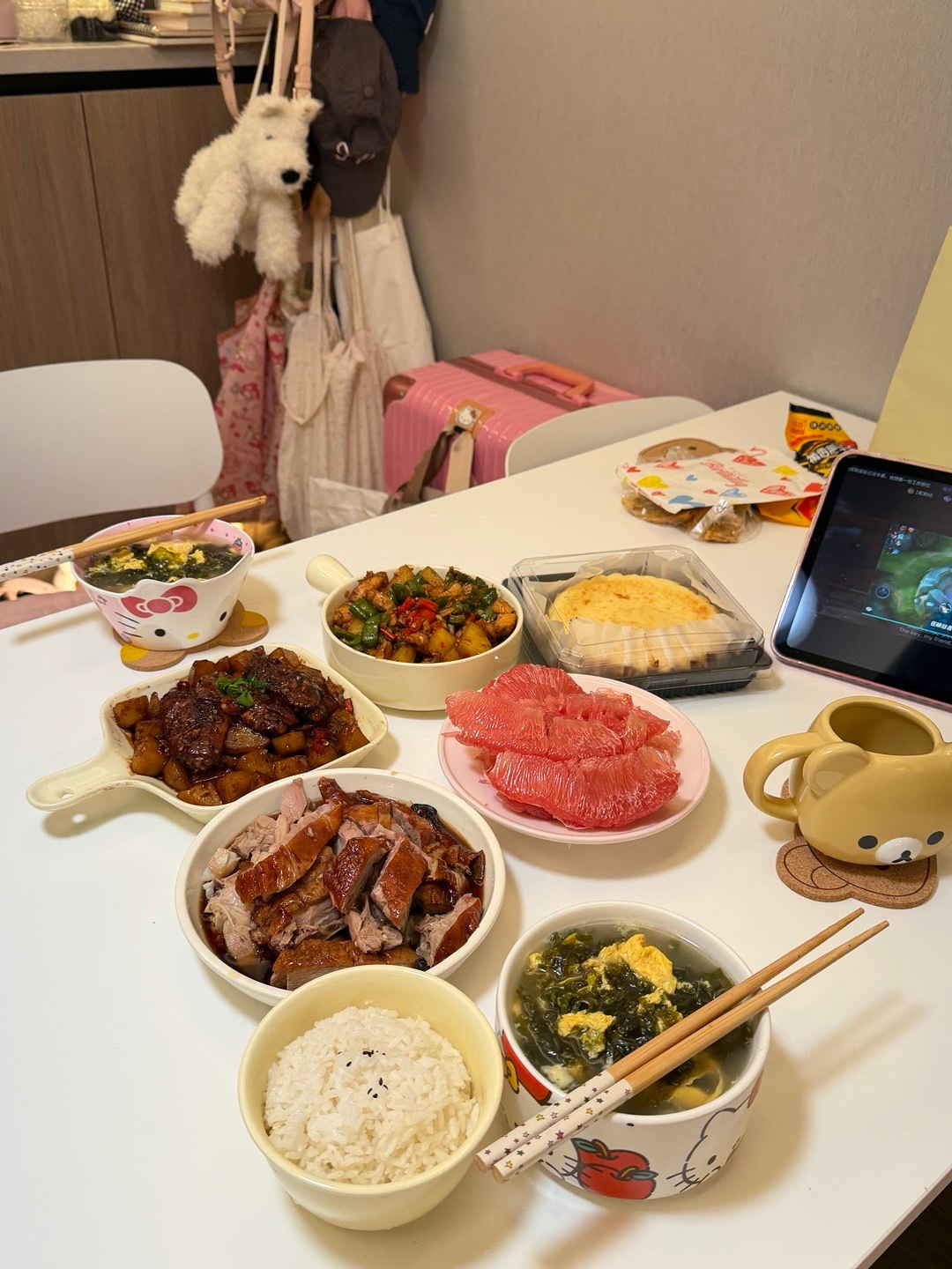 忙碌了一天的李师傅回家终于吃上了三菜一汤[憧憬]菜菜这个贤惠