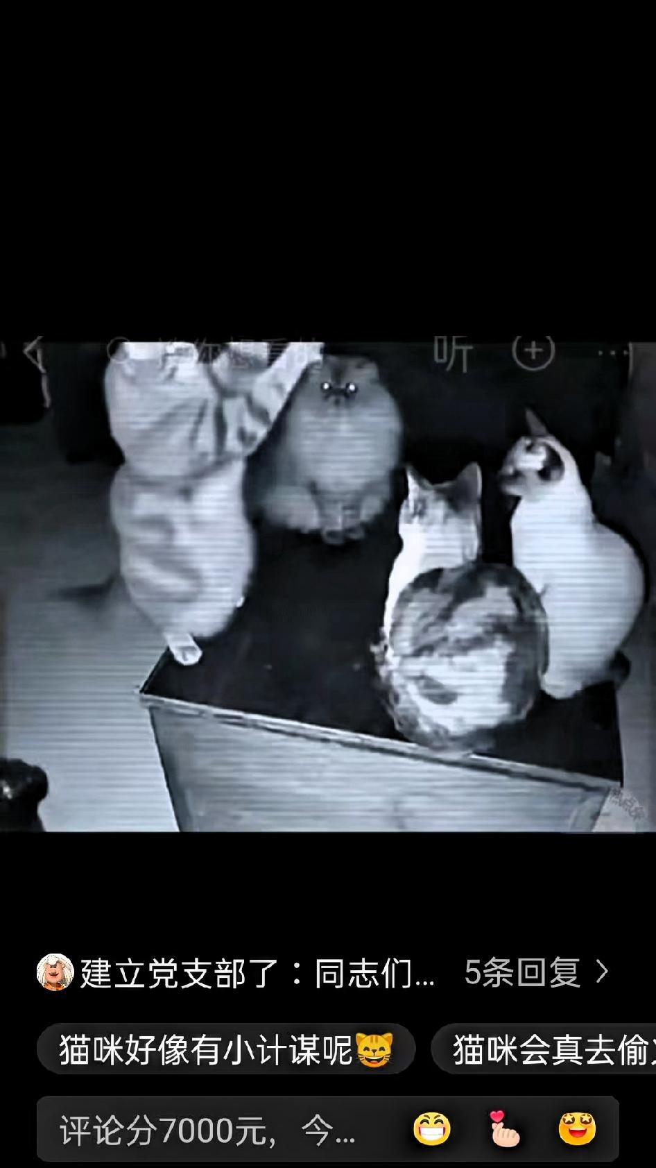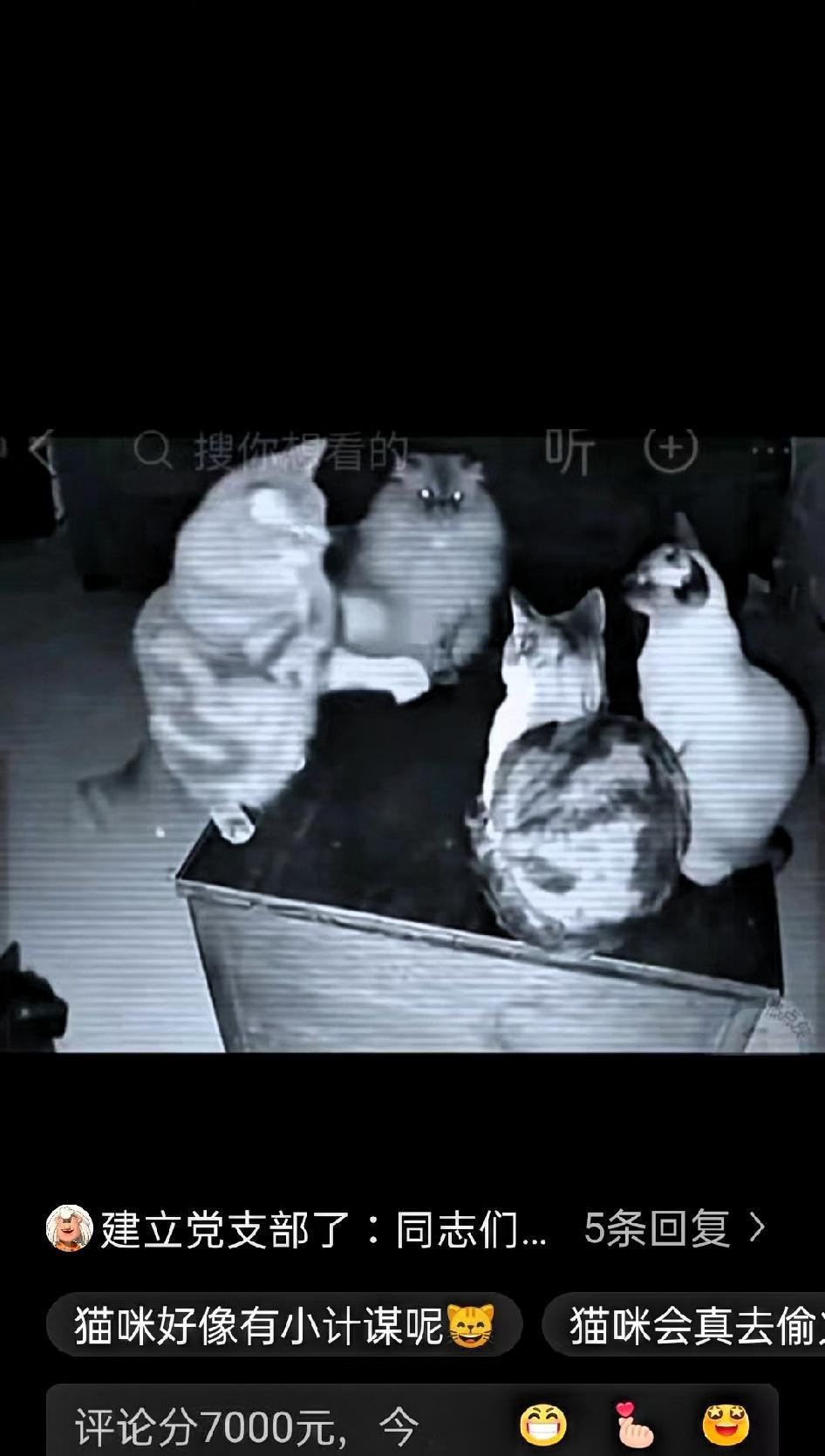 一位网友在家里的监控中,无意中拍到的一组离奇画面, 四只流浪猫围坐成一圈,一只领导猫又是抬爪比划又是探头示意,另外三只听得眼睛都不眨,脑袋还跟着往前凑,那专注劲儿,简直像在开“干饭战略研讨会”,看完直接被萌化了! 网友脑补的“火腿肠觅食攻略”真的笑不活!中间那只猫的动作活脱脱就是个“分享达人”:“兄弟们,街对面超市货架第二排,全是香喷喷的火腿肠!趁人少的时候冲,动作必须快准狠,千万别被店员发现!我天天叼一根回去喂娃,你们也赶紧安排上!” 这画面感,仿佛都能听到它们的“喵星暗语”,实在太有趣了。 但笑着笑着就被戳中了软肋,这哪里是猫咪捣乱,分明是流浪小动物的生存智慧和暖心默契啊!它们没人照顾,风餐露宿本就艰难,却还懂得抱团取暖,把好不容易找到的食物来源毫无保留分享,互相提醒风险,连照顾幼崽的小心思都藏在这场“小会议”里。这份不掺杂质的互帮互助,比很多复杂的人际关系都要纯粹治愈。 我们总觉得动物懵懂无知,可它们早就有了自己的交流方式和“小社会”。这些流浪猫的“秘密聚会”,藏着最朴素的生存哲学——单打独斗太难,抱团协作才能熬过难关,互相帮衬才能吃到“饱饭”。 其实不管是人还是动物,真诚的陪伴和善意永远最动人。这些流浪猫用简单的互动告诉我们,善良不分物种,抱团取暖的力量总能抵御风雨。