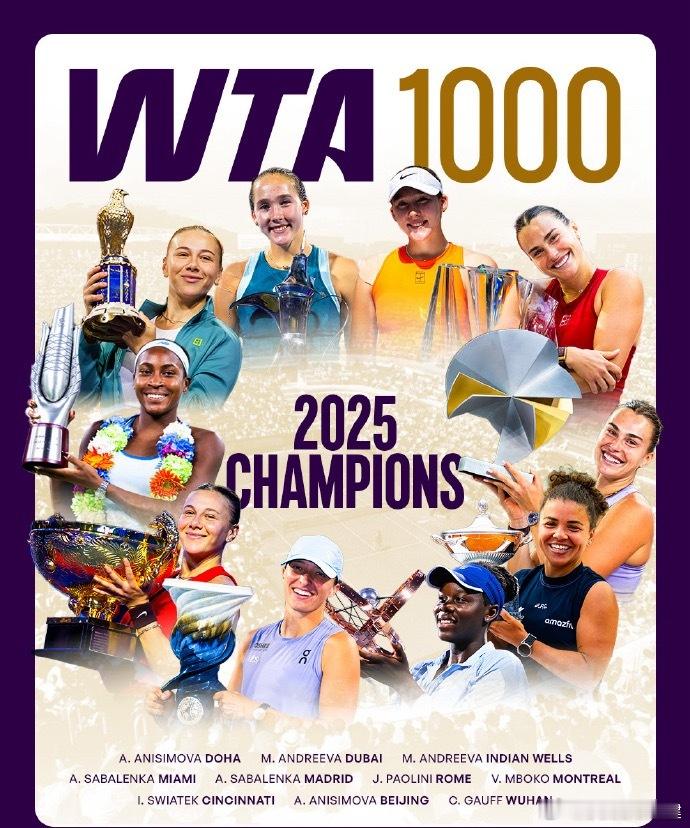 好惨!安德烈娃成为史上第二位在单赛季赢得多个WTA1000赛冠军却无缘年终总决赛的选手。