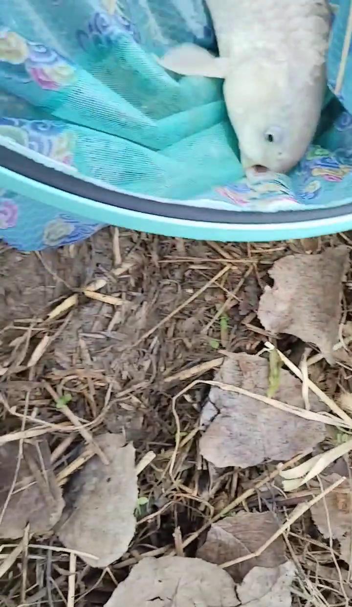 那条鲤鱼嘴上缺了一块,明显是老钓友了。 十秒内,钓手湿手摘钩,倒拎鱼头,啪一下放