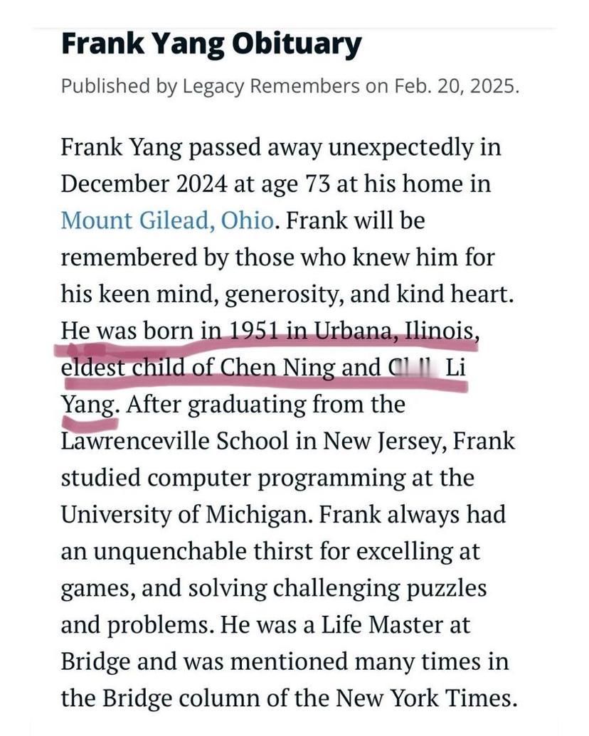 杨光诺没有现身葬礼,猜测可能去见爱因斯坦 杨老先生葬礼二儿子和小女儿都到场了,唯独大儿子没有到,现场也看不到大儿子的挽联, 很多人表示疑问,父亲去世作为长子必须要参加,其他的事情都靠边站。还有人说杨光诺一直在美国长大及生活,中国的习俗他不重视。 其实从一些细节就能看出杨光诺为什么不来? 杨家三兄妹都是美籍华人,都生活在美国,他们如果不重视中国习俗老二和老三也不会来了,老大不过来更没有理由。 人不到场挽联也没送,有种可能人不在这个世上了,去年就有报道杨光诺在国内某城市换器官,说明得了重疾。今年没来参加父亲葬礼也就说明手术失败人不在了。 印象最深的一张杨光诺小时候与伟大的科学家爱因斯坦的合照,时间一晃恍如隔世。